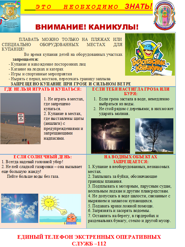 Предлагаем вашему вниманию памятки по безопасности в летний период: