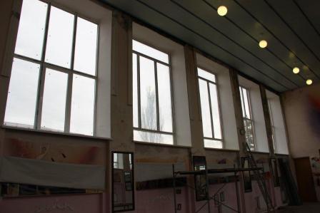 Тогда Евгений Ильин поручил немедленно начать работы по утеплению окон. Сегодня они уже завершены в дискотечном зале. Утепление окон и установка подоконников и откосов сейчас продолжаются в хореографическом зале.