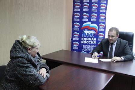 24 января 2017 года в общественной приемной Партии «Единая Россия» Секретарь Тбилисского местного отделения Евгений Ильин провел очередной прием граждан по личным вопросам. Жители Тбилисского района обратились с различными просьбами.