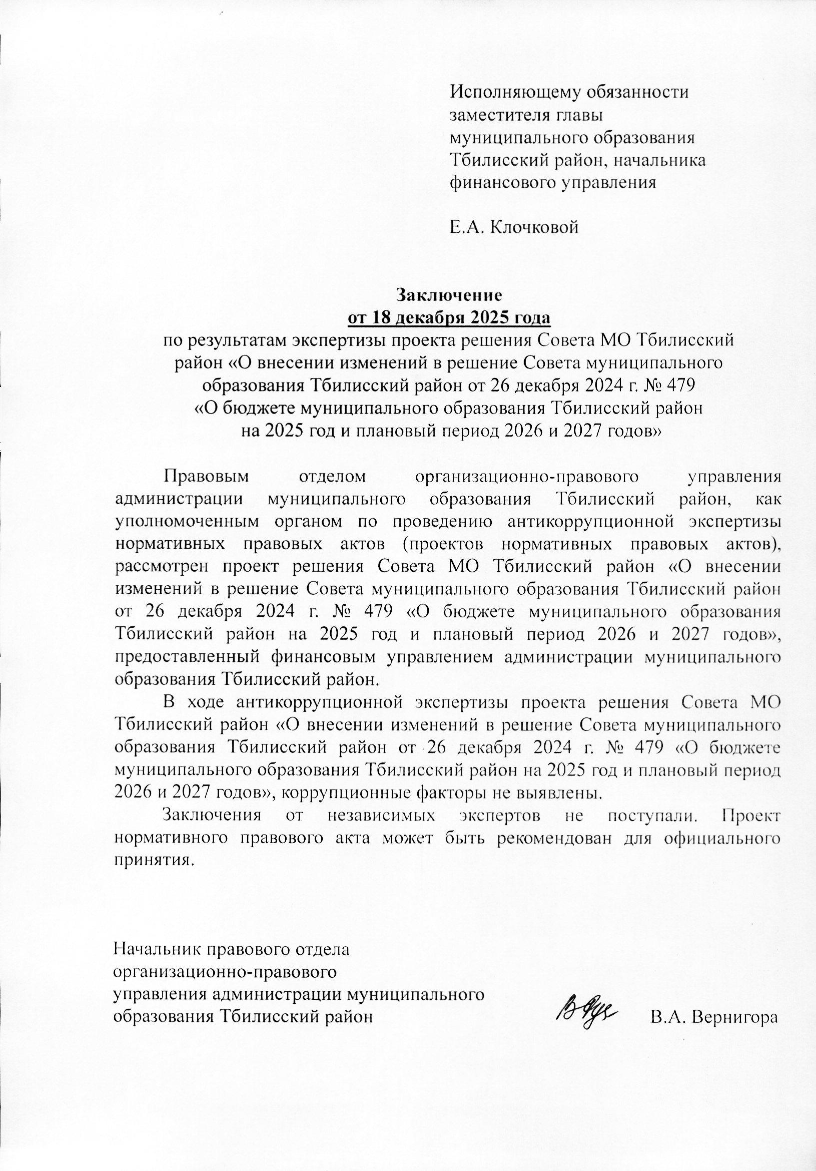 Заключение на изменение в проект муниципальной программы муниципального образования Тбилисский район «Обеспечение жильем молодых семей» от 19 декабря 2025 года Скачать