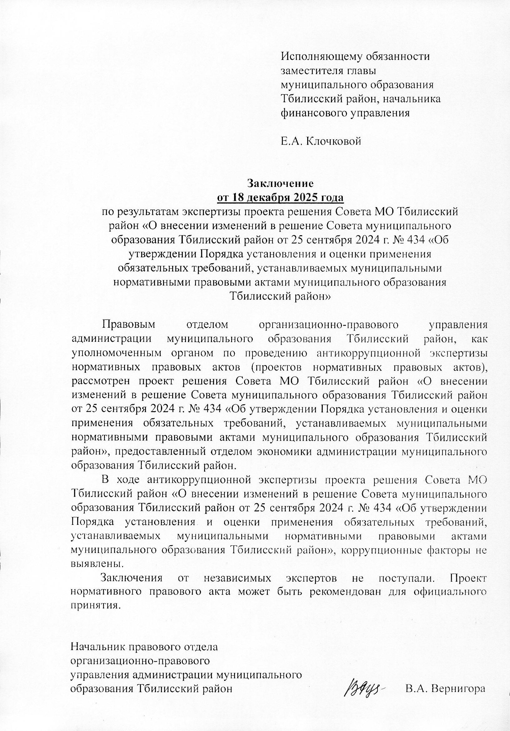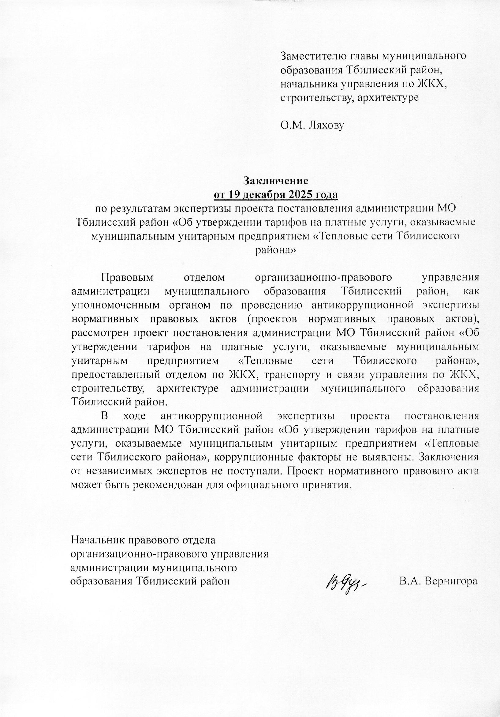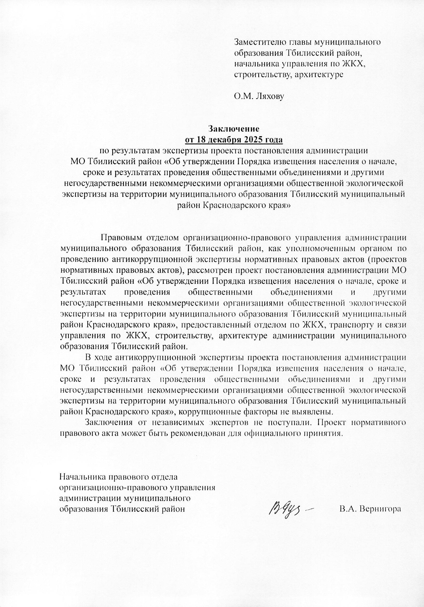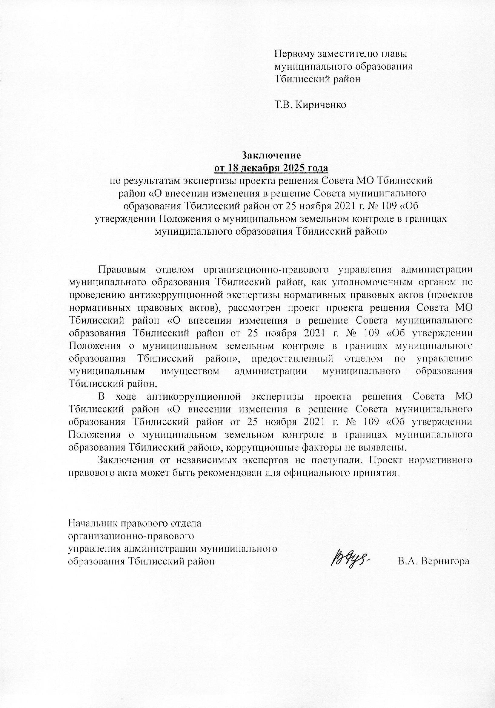 Заключение органа, уполномоченного на проведение антикоррупционной экспертизы: