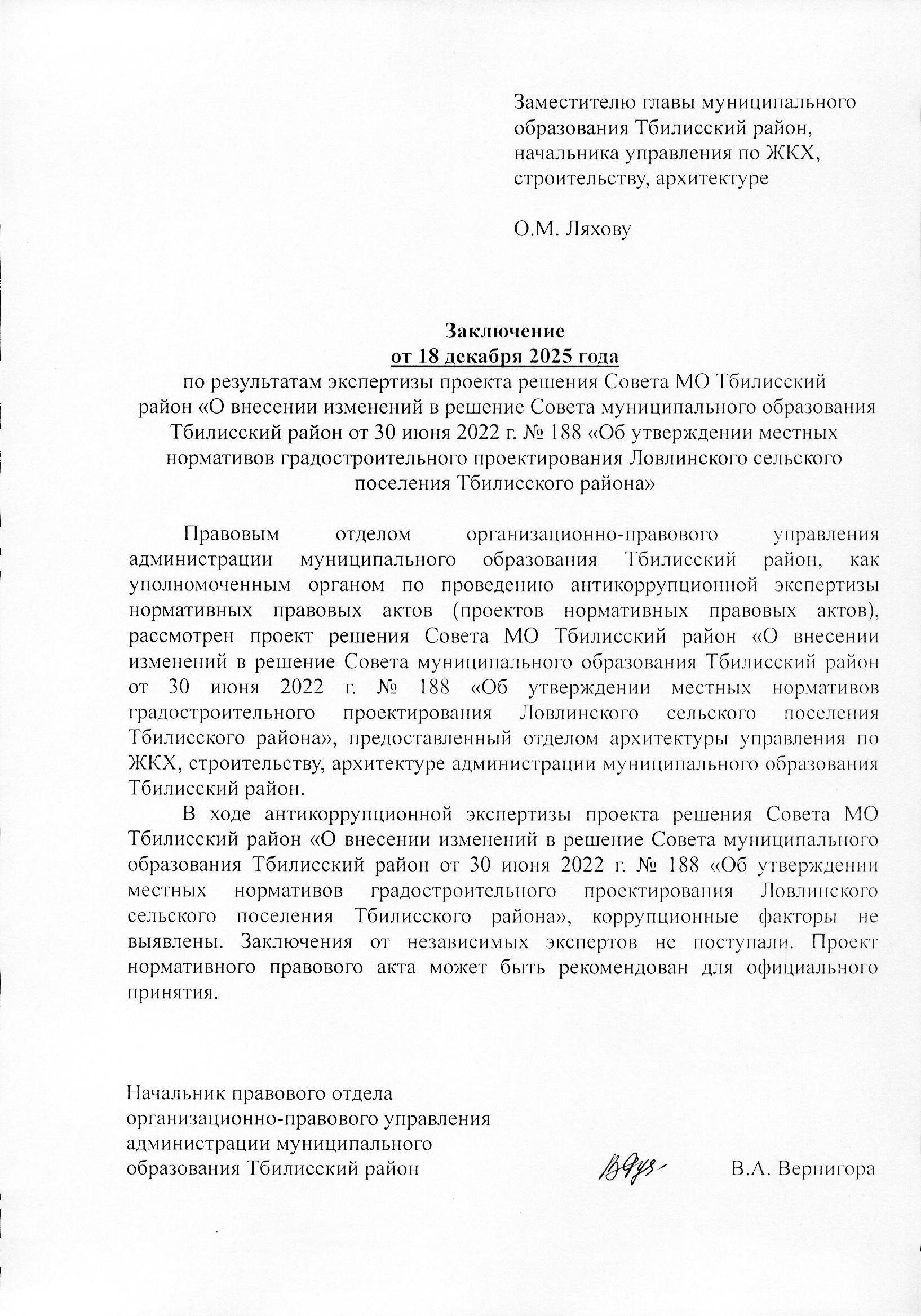 О внесении изменений в решение Совета муниципального образования Тбилисский район от 30 июня 2022 г. № 188 «Об утверждении местных нормативов градостроительного проектирования Ловлинского сельского поселения Тбилисского района»