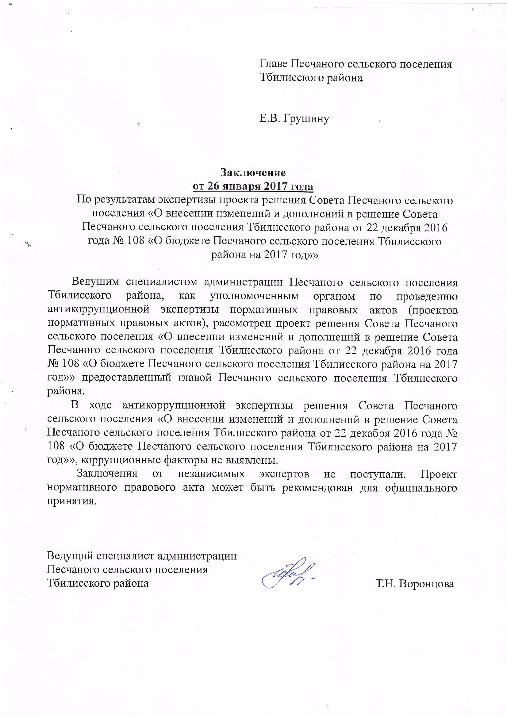 Адрес электронной почты администрации муниципального образования Тбилисский район для направления экспертных заключений независимых антикоррупционных экспертов: tbilisk@mo.krasnodar.ru