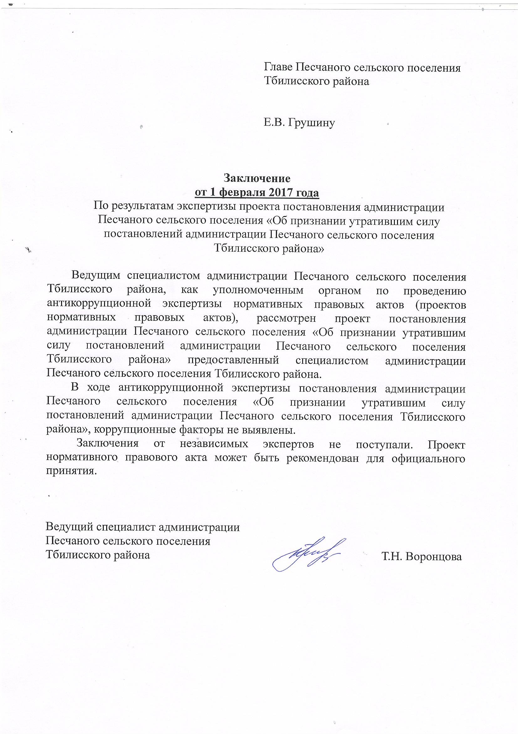 Заключение органа, уполномоченного на проведение антикоррупционной экспертизы:
