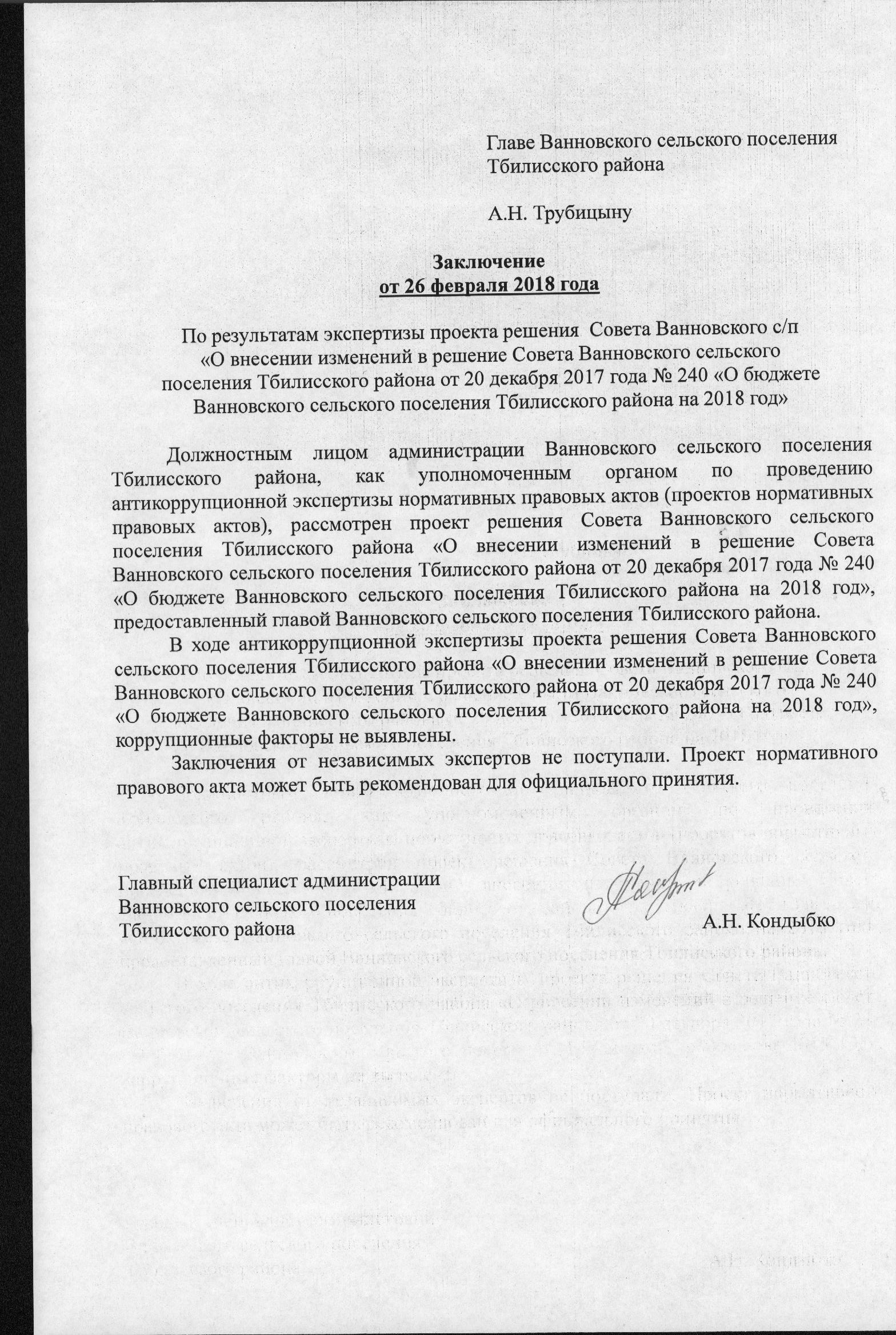 Заключение органа, уполномоченного на проведение антикоррупционной экспертизы: