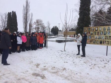 Школьники прочли стихотворения о войне. Затем все присутствующие возложили цветы к памятнику.