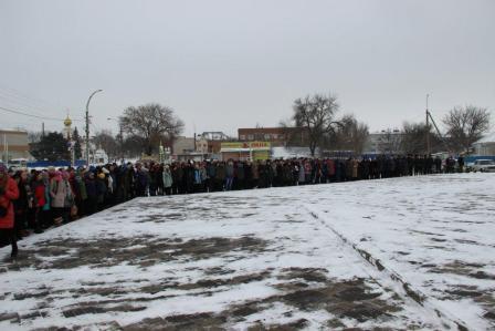 Митинг начался под гимны России и Краснодарского края. Затем настоятель Свято-Покровского храма Отец Василий совершил молебен.