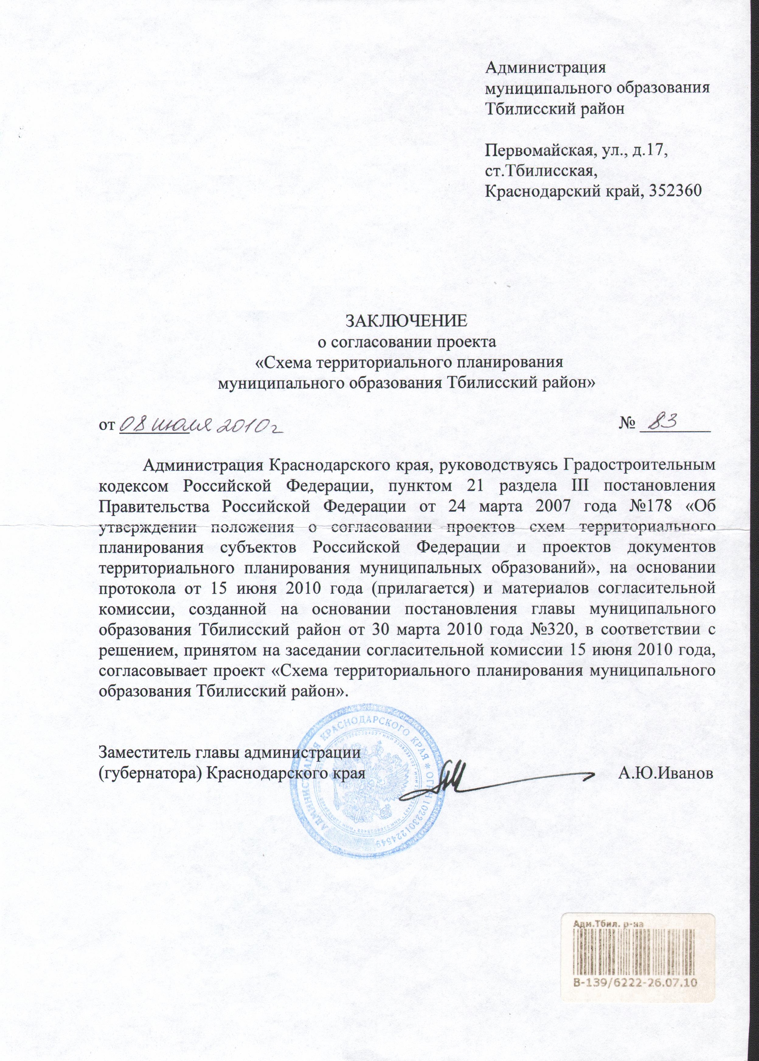 Решение Совета муниципального образования Тбилисский район от 20 августа 2010 года № 90 «Об утверждении схемы территориального планирования муниципального образования Тбилисский район» |