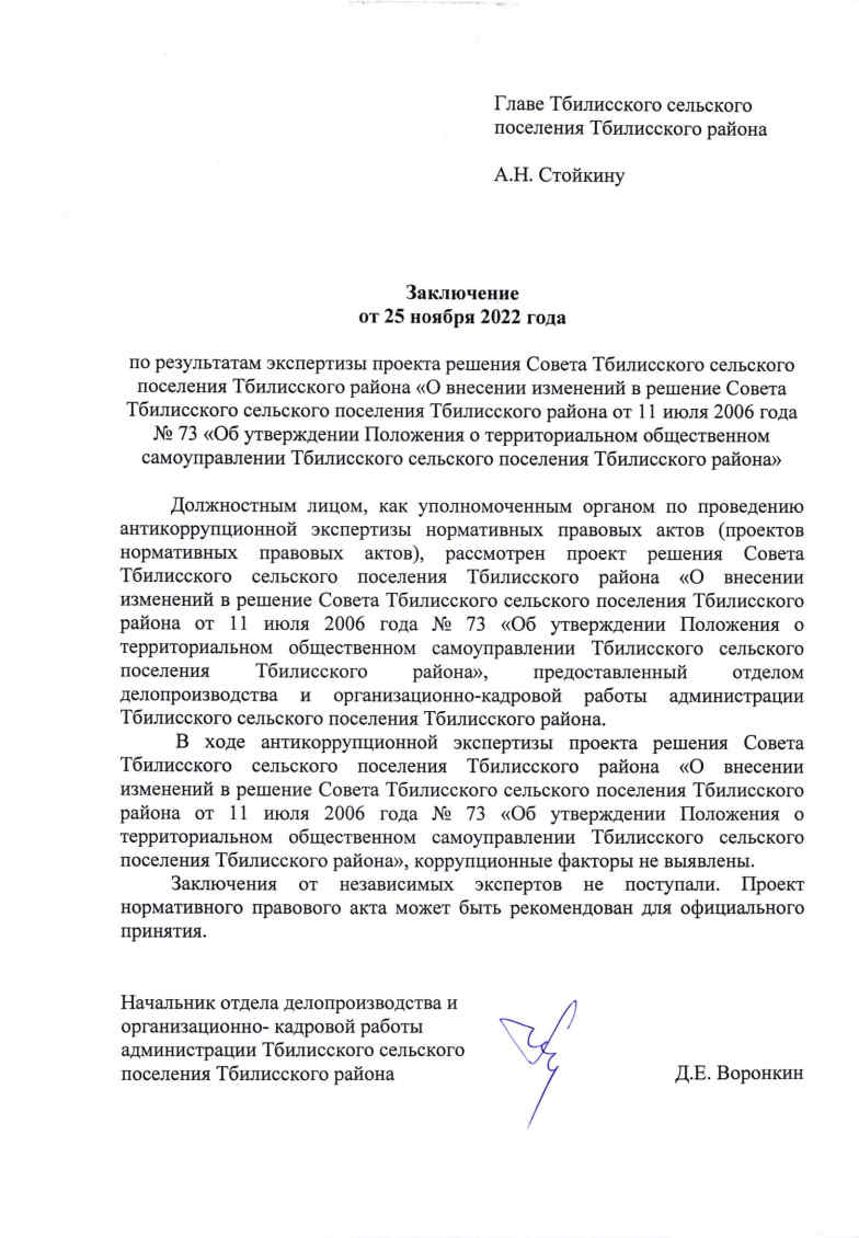 Адрес электронной почты администрации муниципального образования Тбилисский район для направления экспертных заключений независимых антикоррупционных экспертов: tbilisk@mo.krasnodar.ru