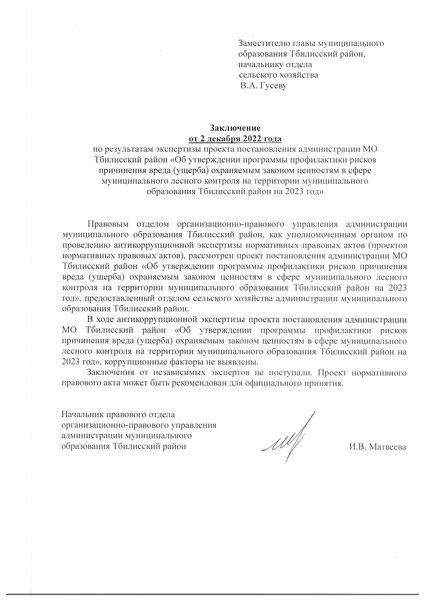 Об утверждении программы профилактики рисков причинения вреда (ущерба) охраняемым законом ценностям в сфере муниципального лесного контроля на территории муниципального образования Тбилисский район на 2023 год