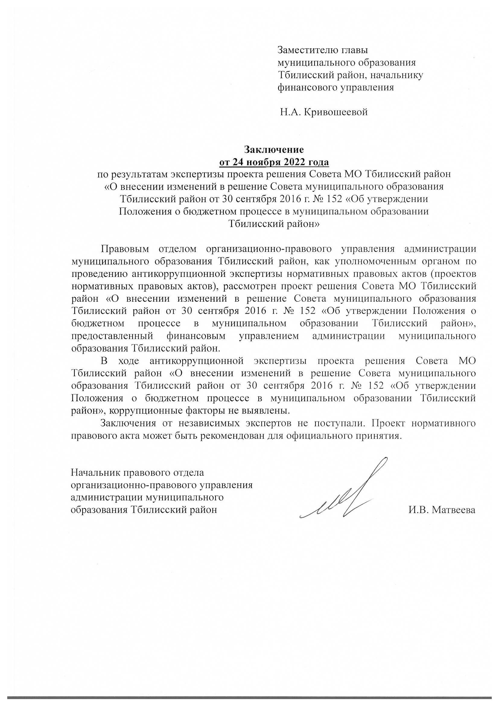 Заключение органа, уполномоченного на проведение антикоррупционной экспертизы: