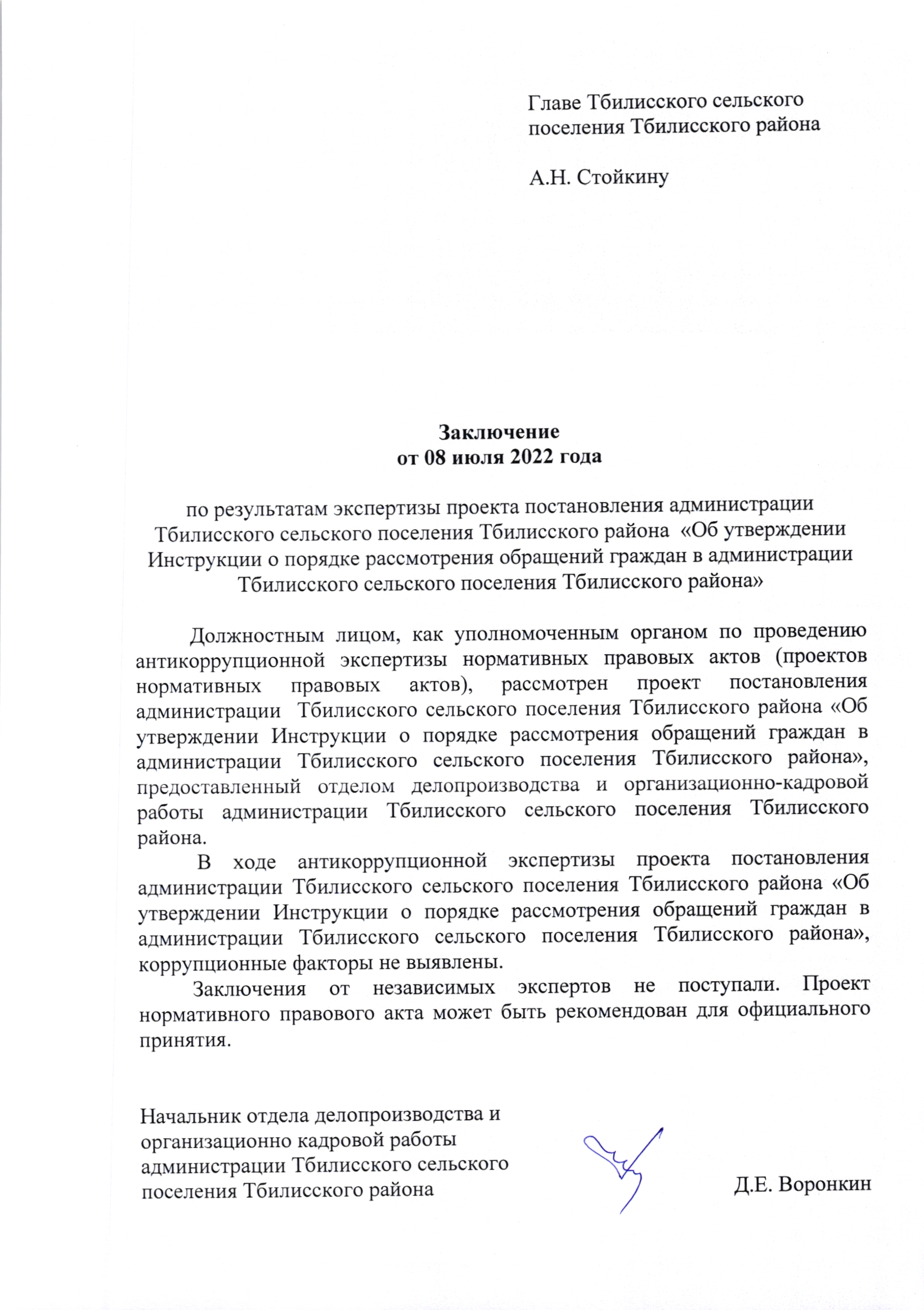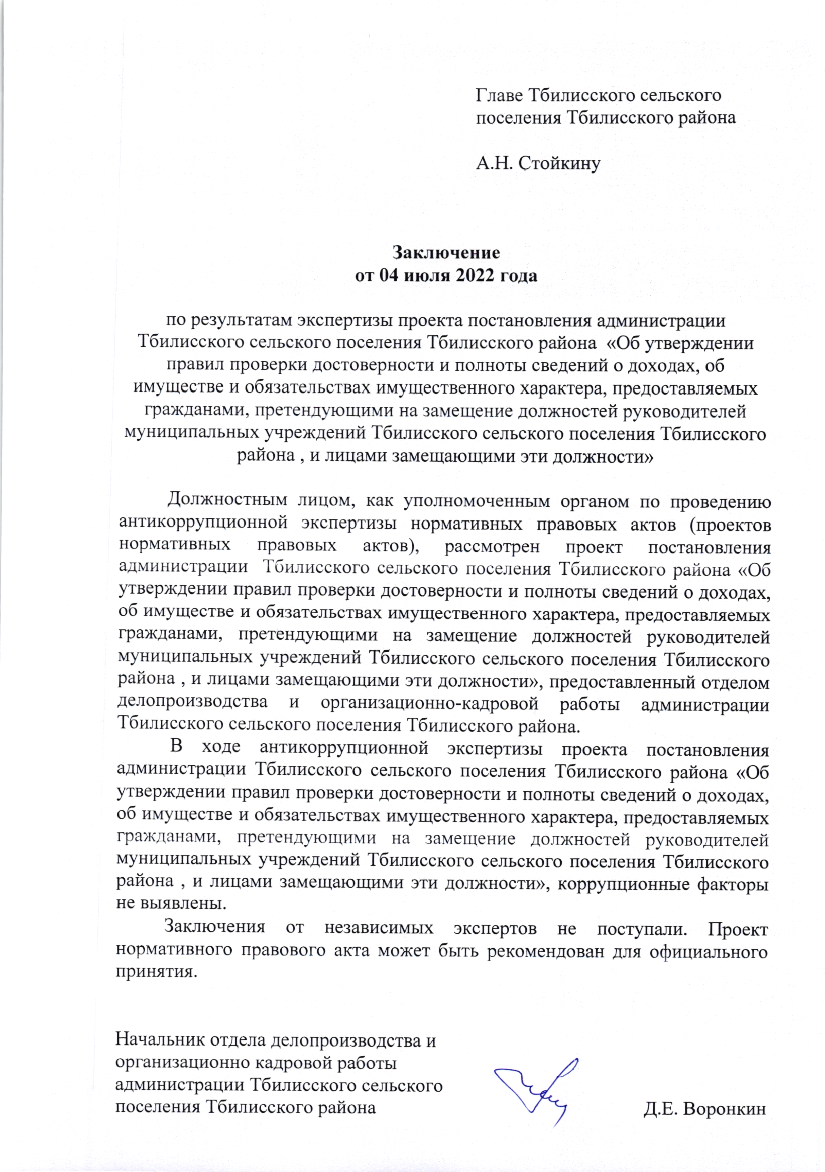 Адрес электронной почты администрации муниципального образования Тбилисский район для направления экспертных заключений независимых антикоррупционных экспертов: tbilisk@mo.krasnodar.ru