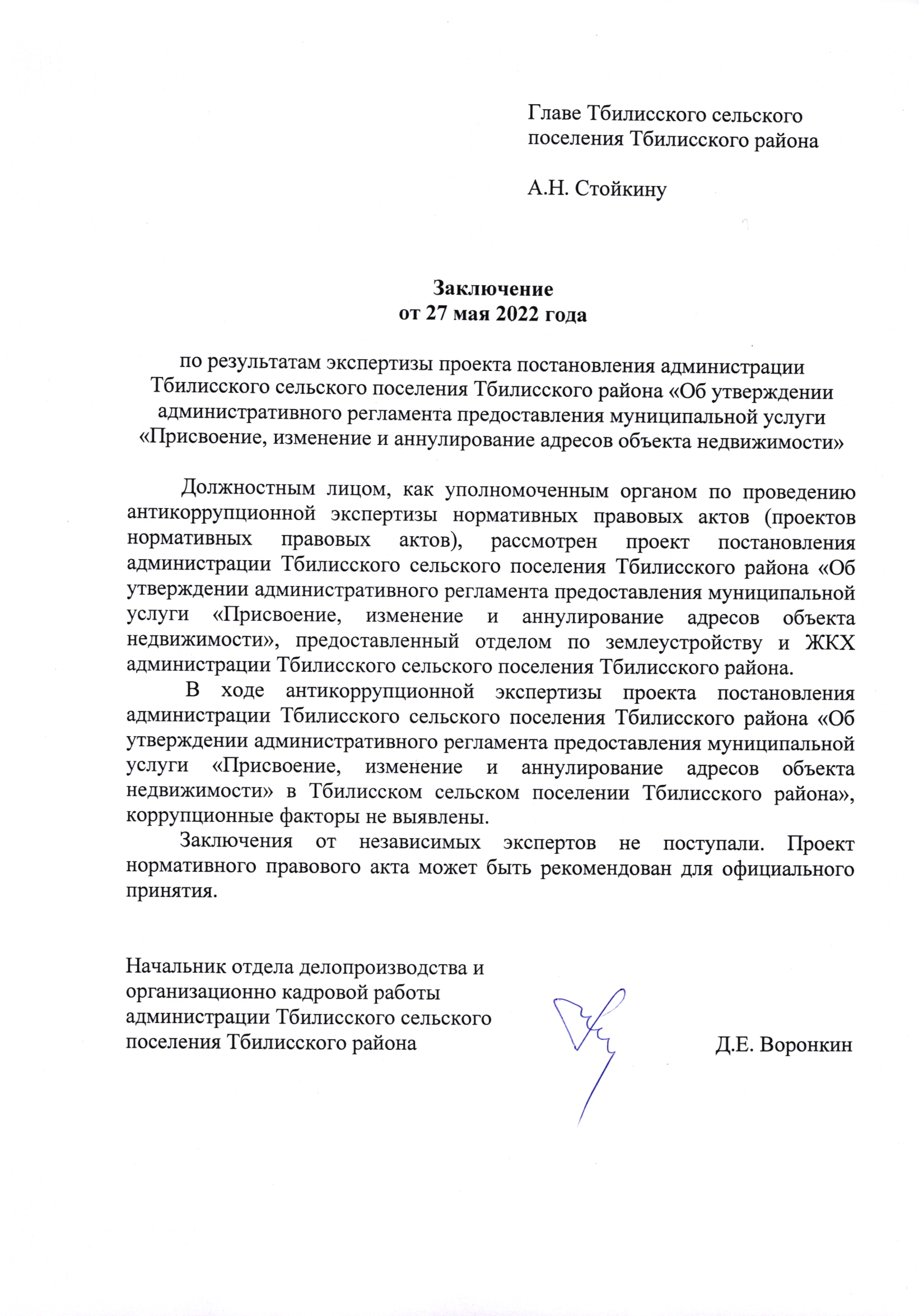 Адрес электронной почты администрации муниципального образования Тбилисский район для направления экспертных заключений независимых антикоррупционных экспертов: tbilisk@mo.krasnodar.ru