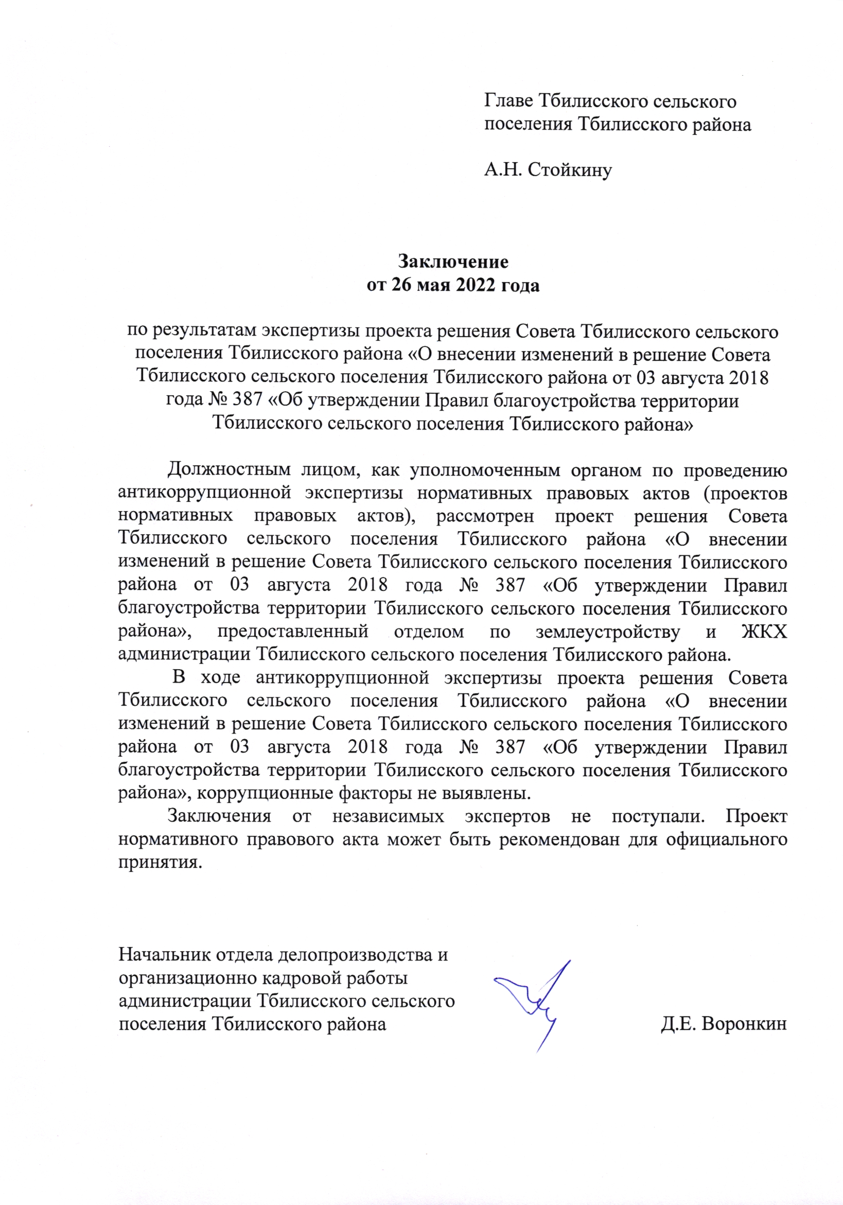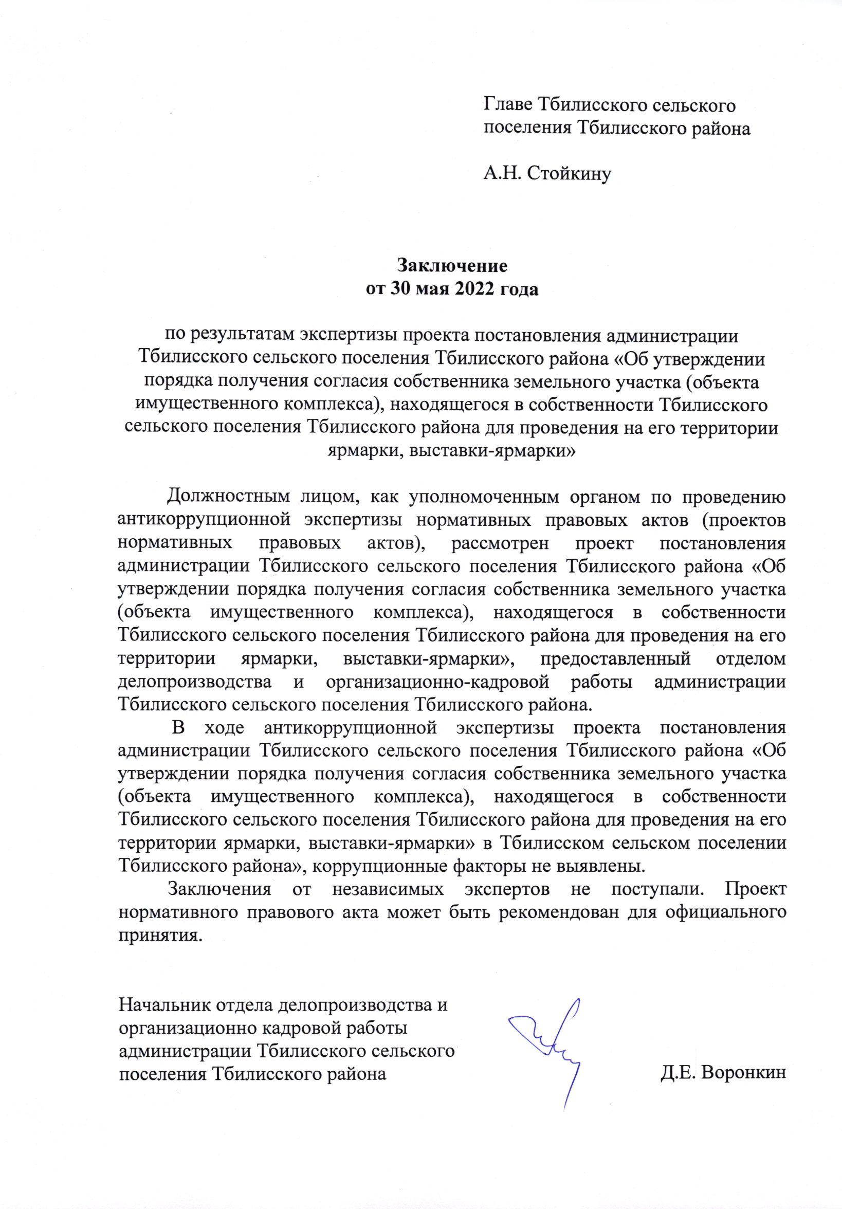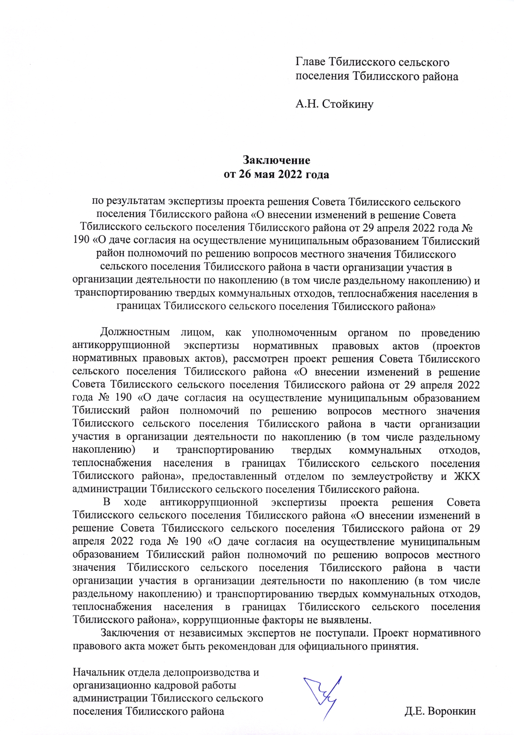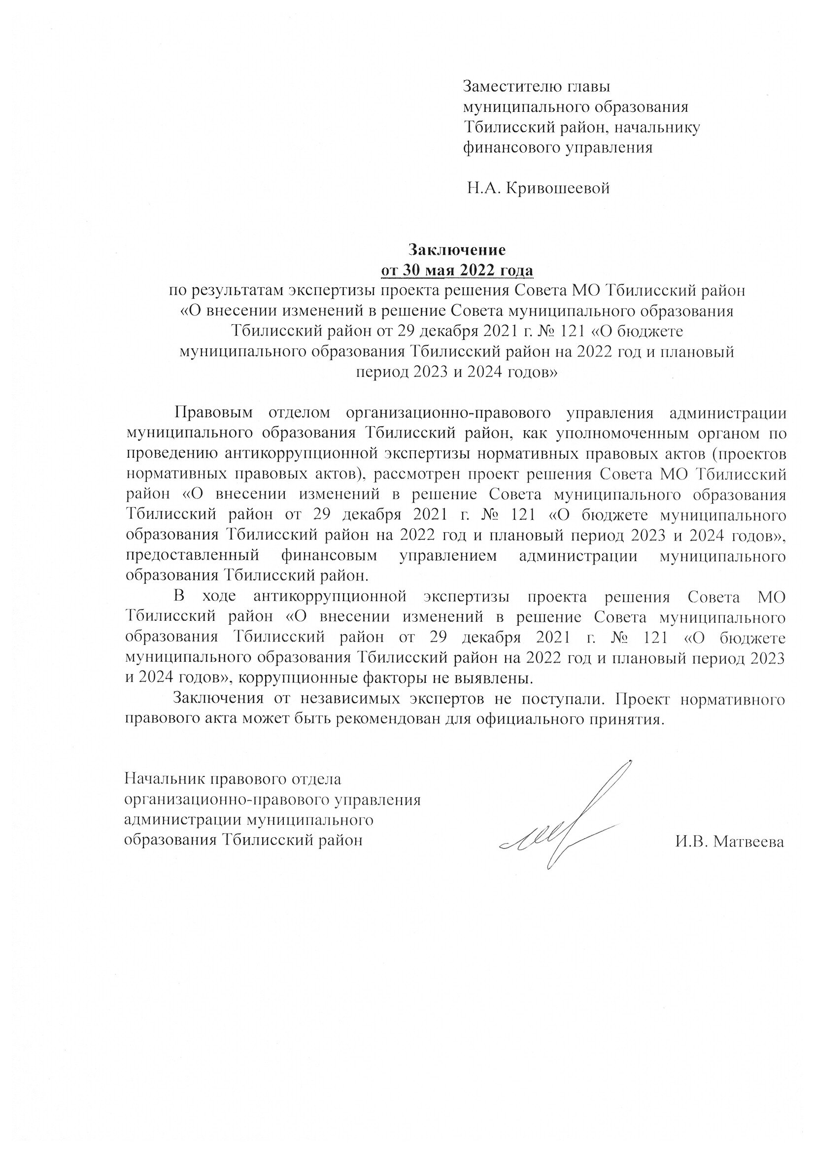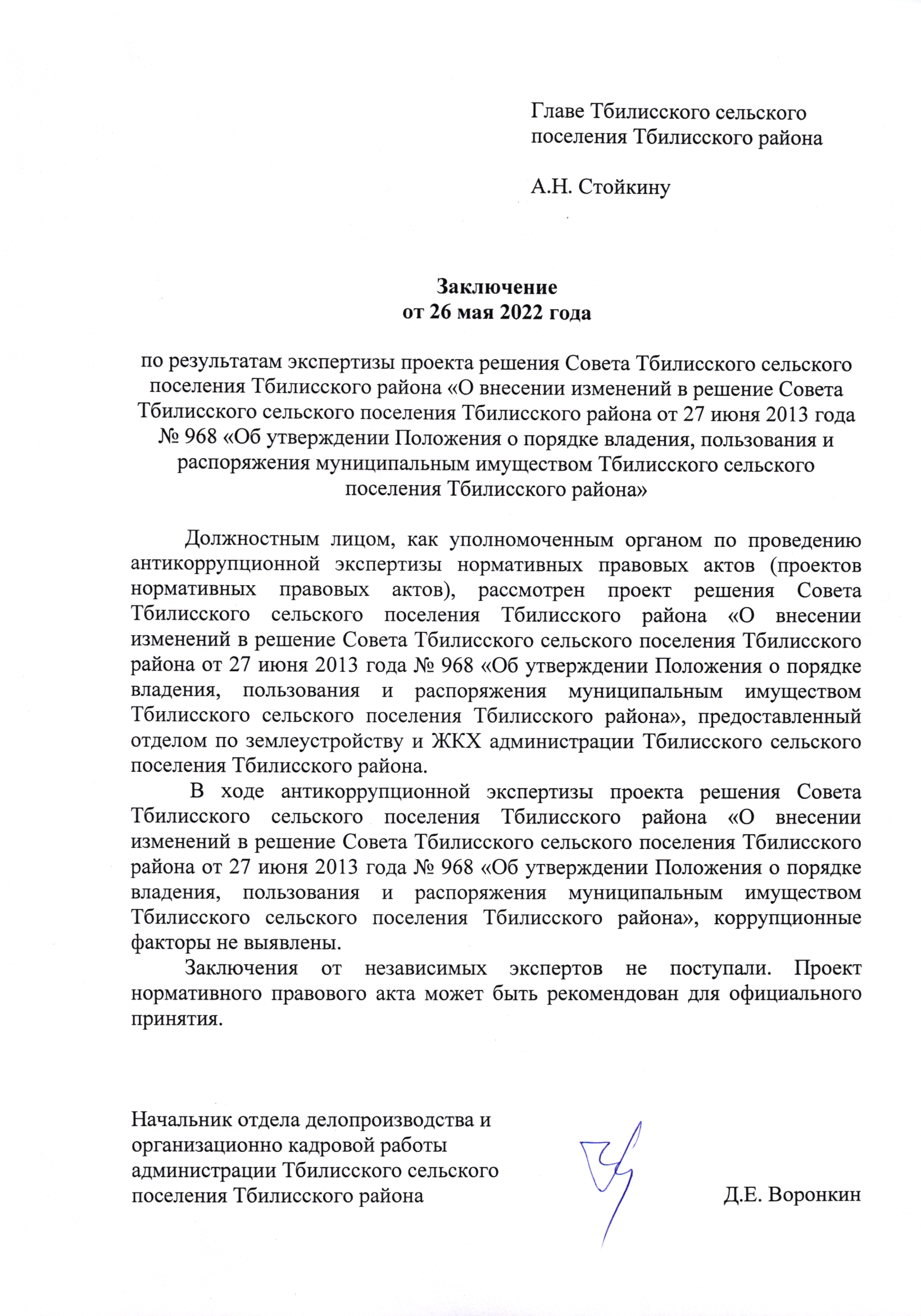 Заключение органа, уполномоченного на проведение антикоррупционной экспертизы: