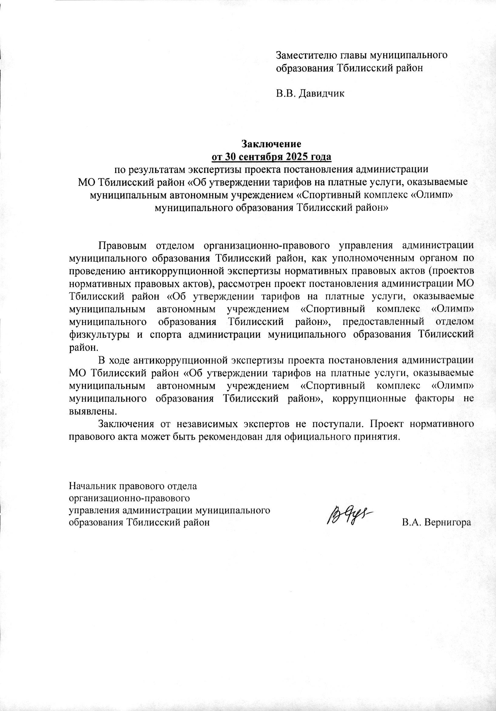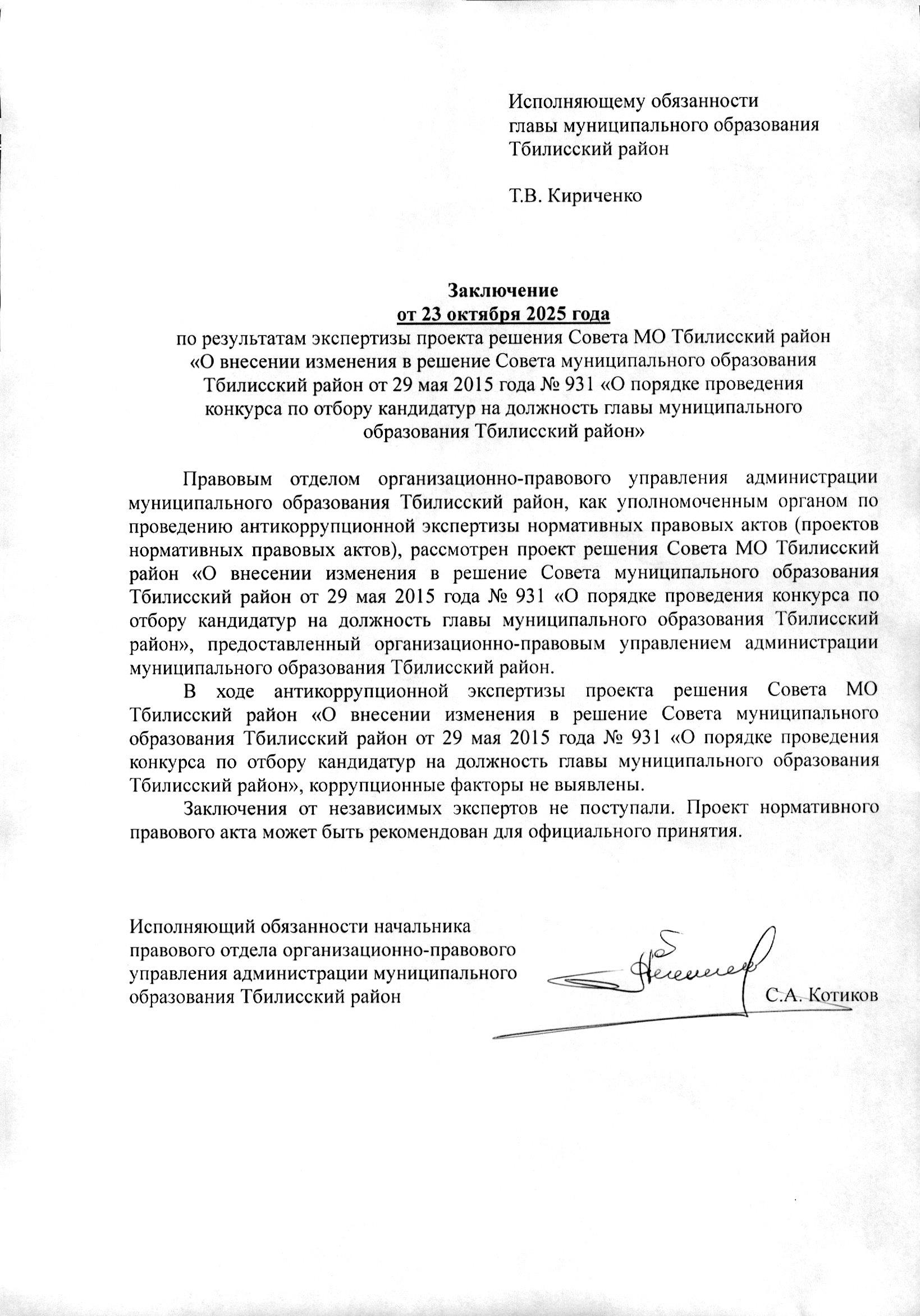 Адрес электронной почты администрации муниципального образования Тбилисский район для направления экспертных заключений независимых антикоррупционных экспертов: tbilisk@mo.krasnodar.ru