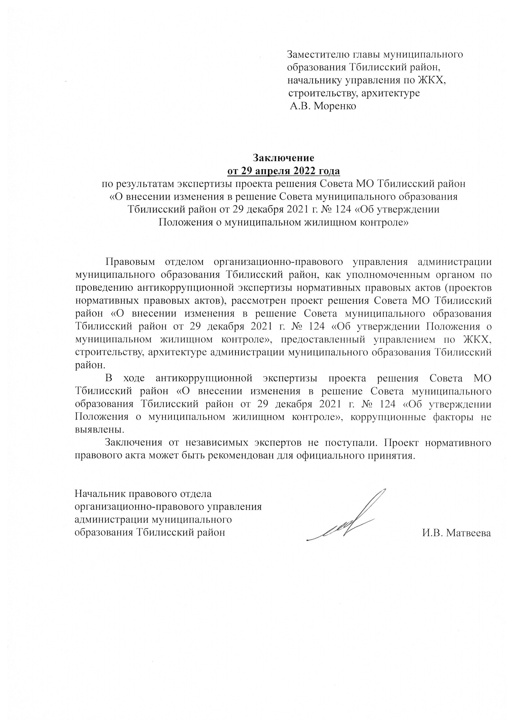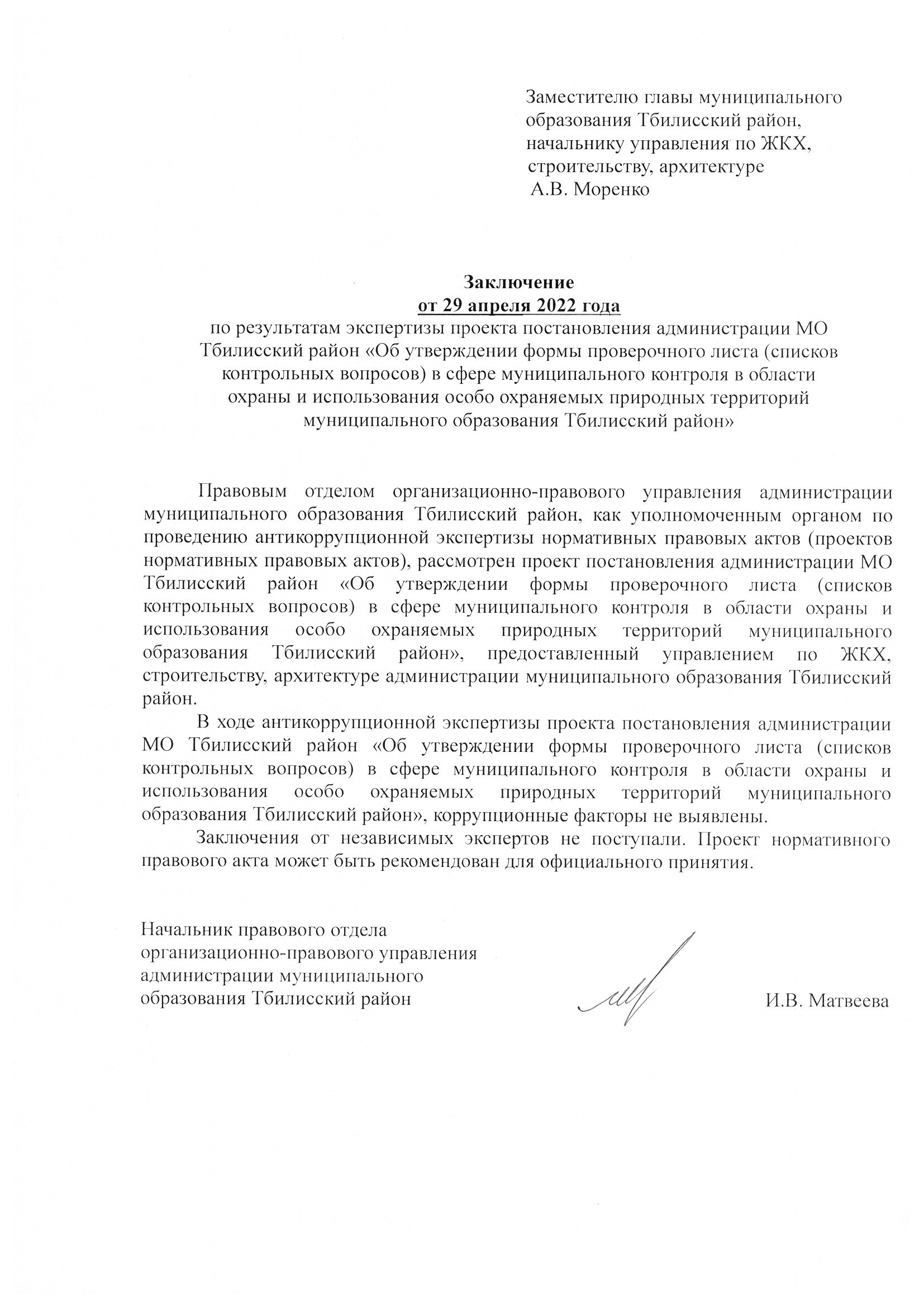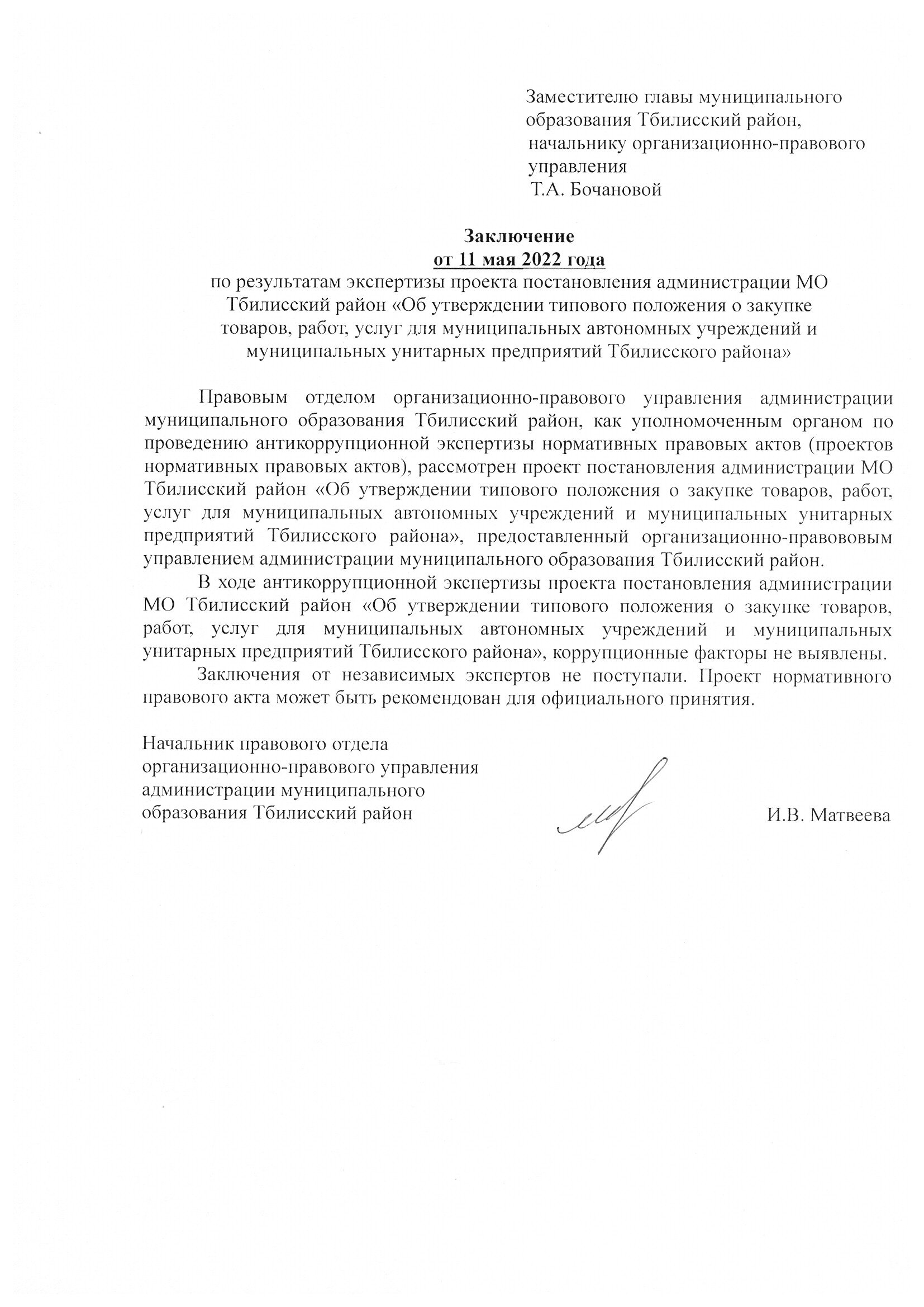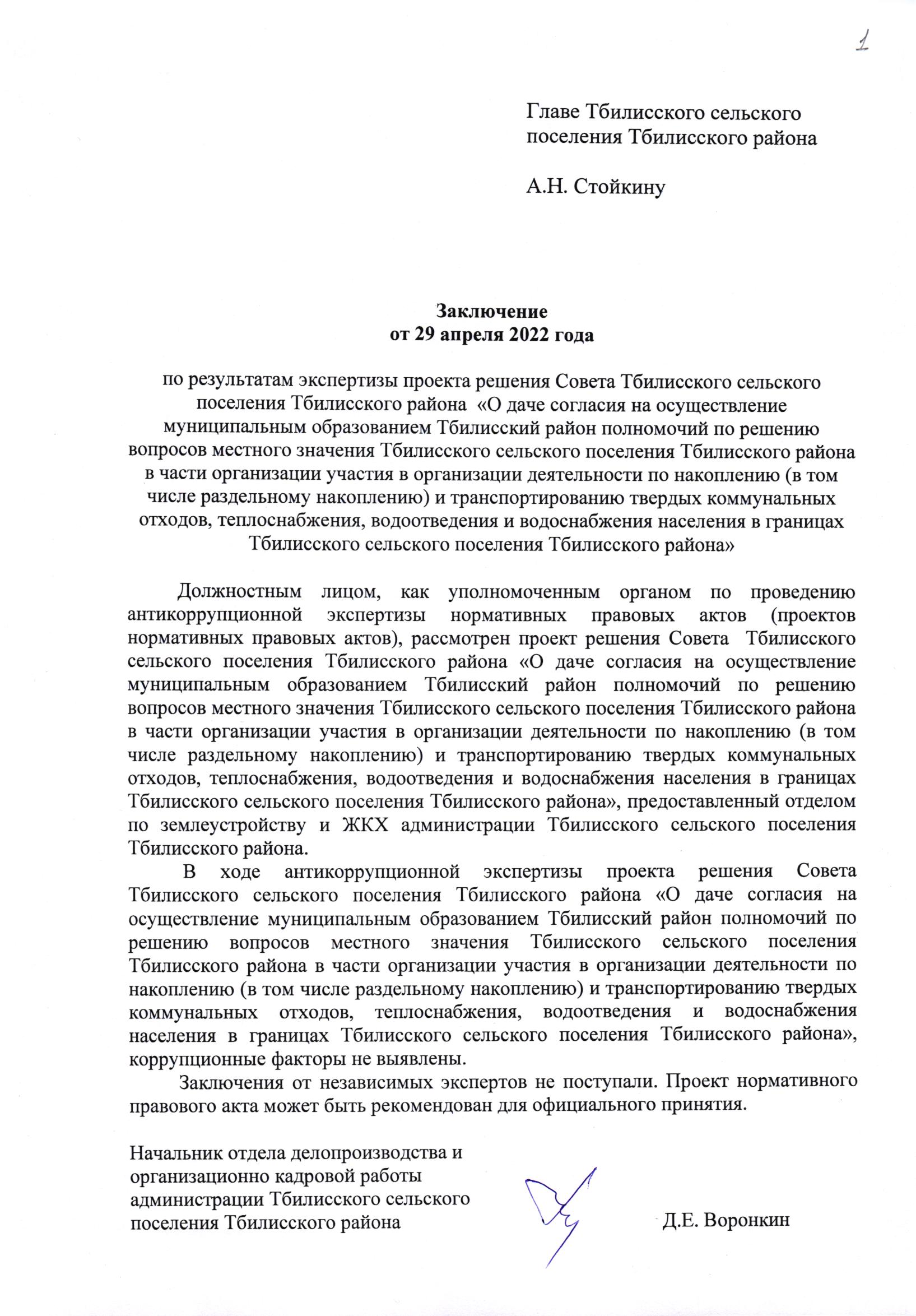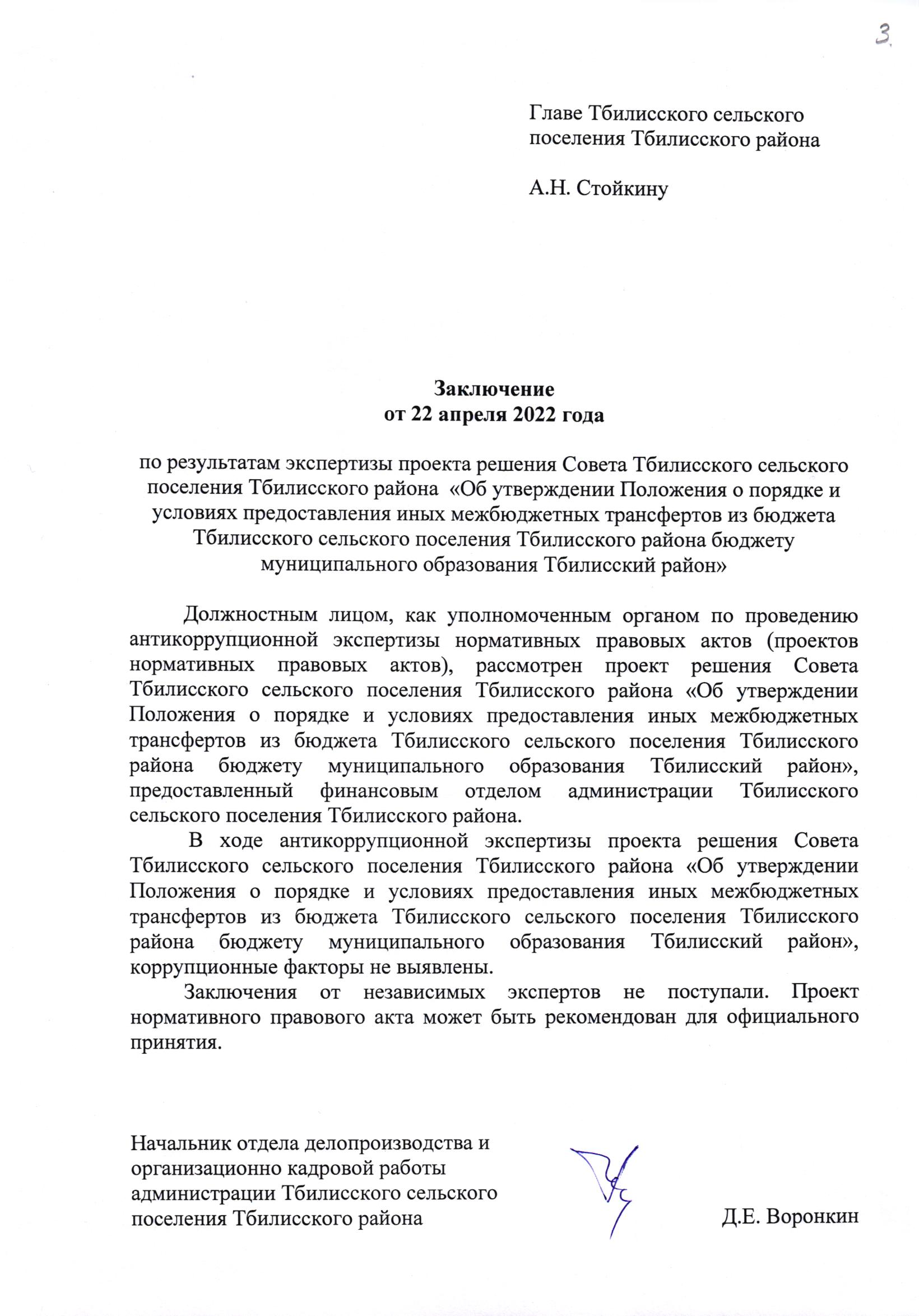 Заключение органа, уполномоченного на проведение антикоррупционной экспертизы: