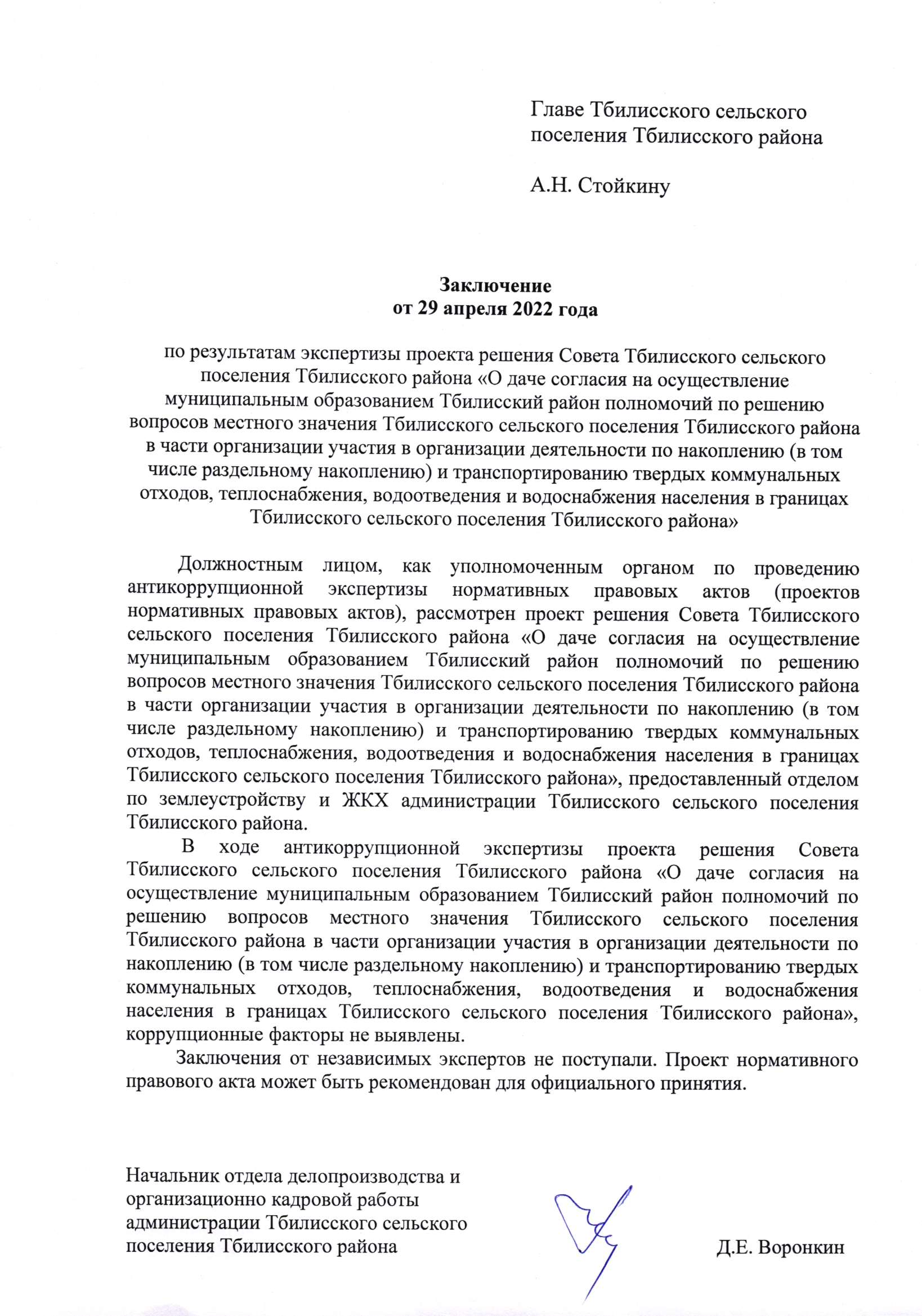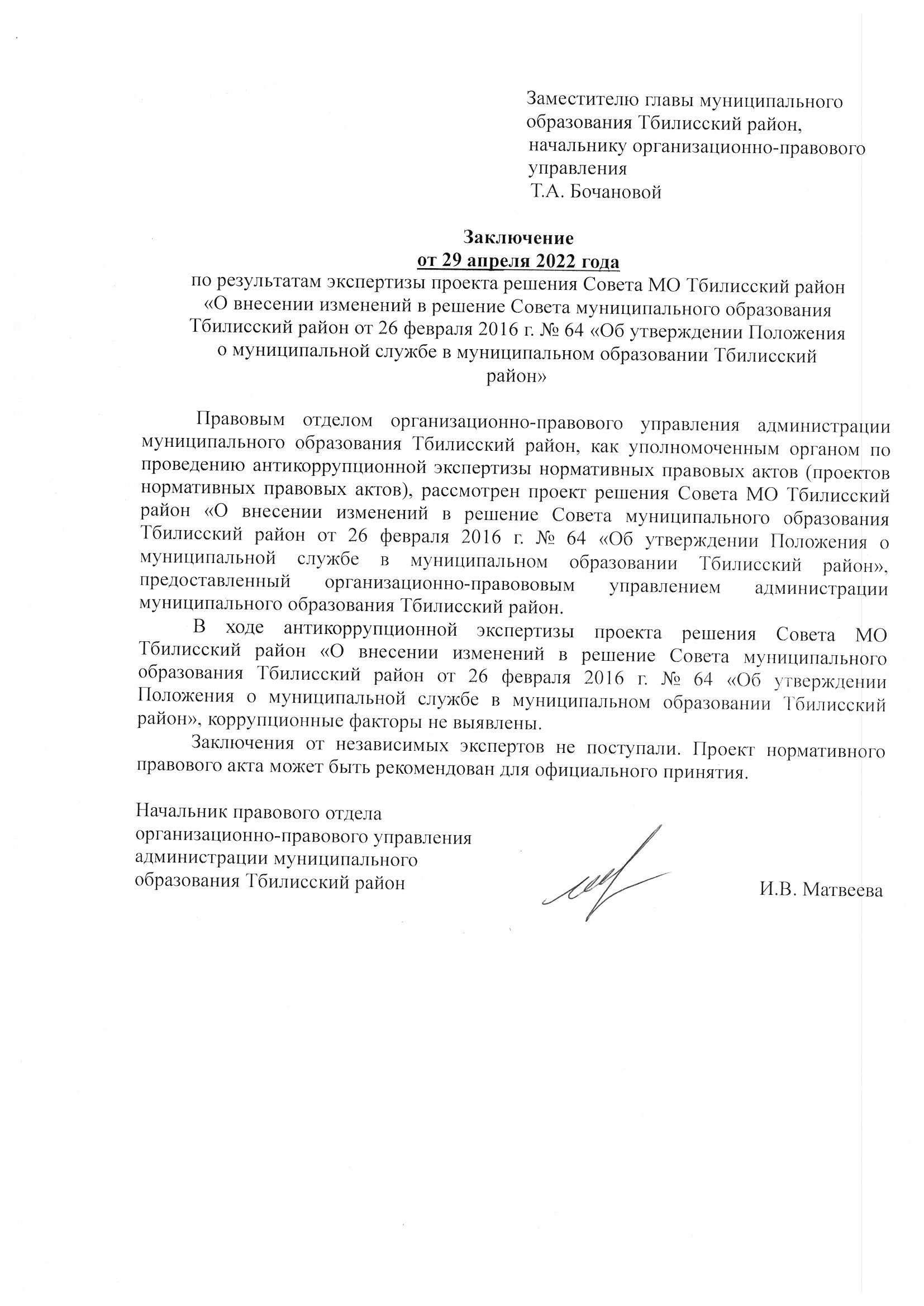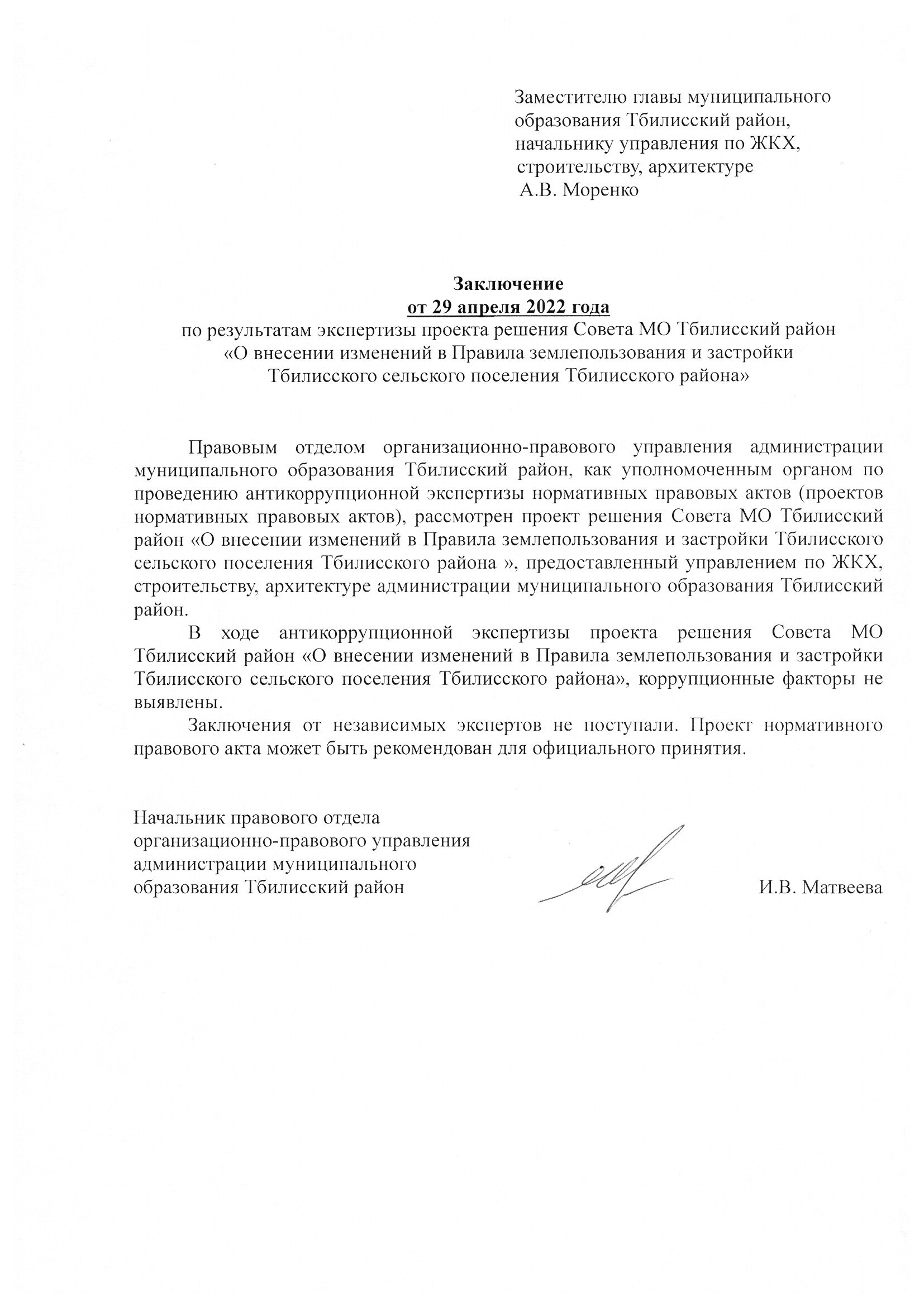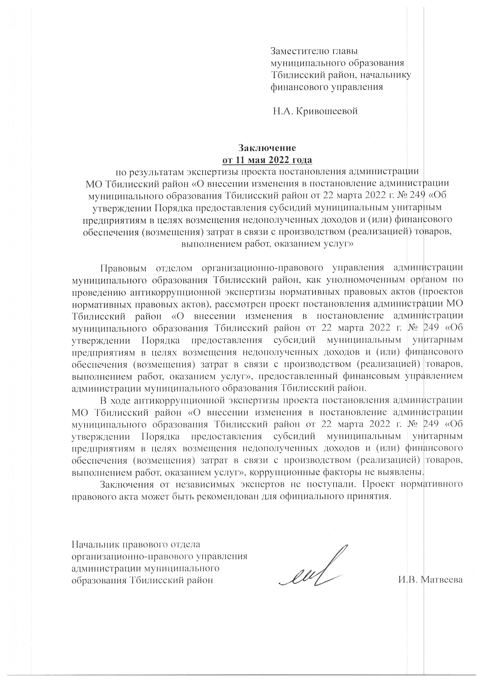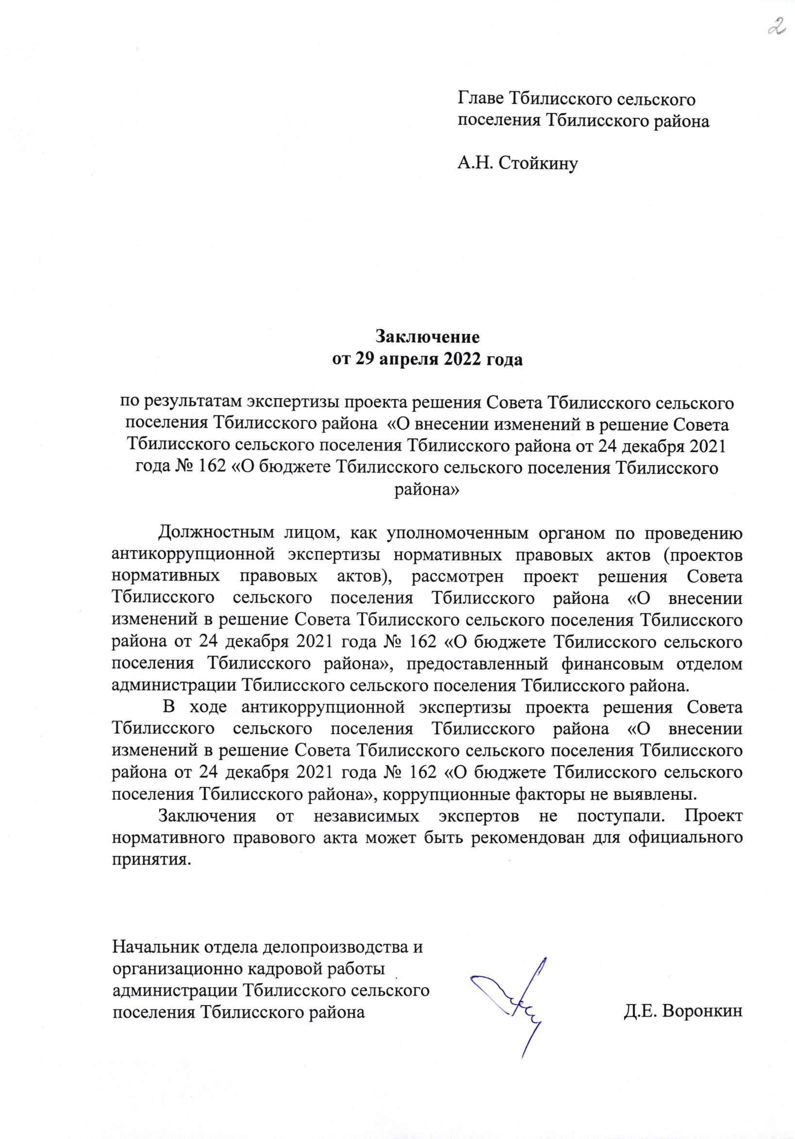 Заключение органа, уполномоченного на проведение антикоррупционной экспертизы: