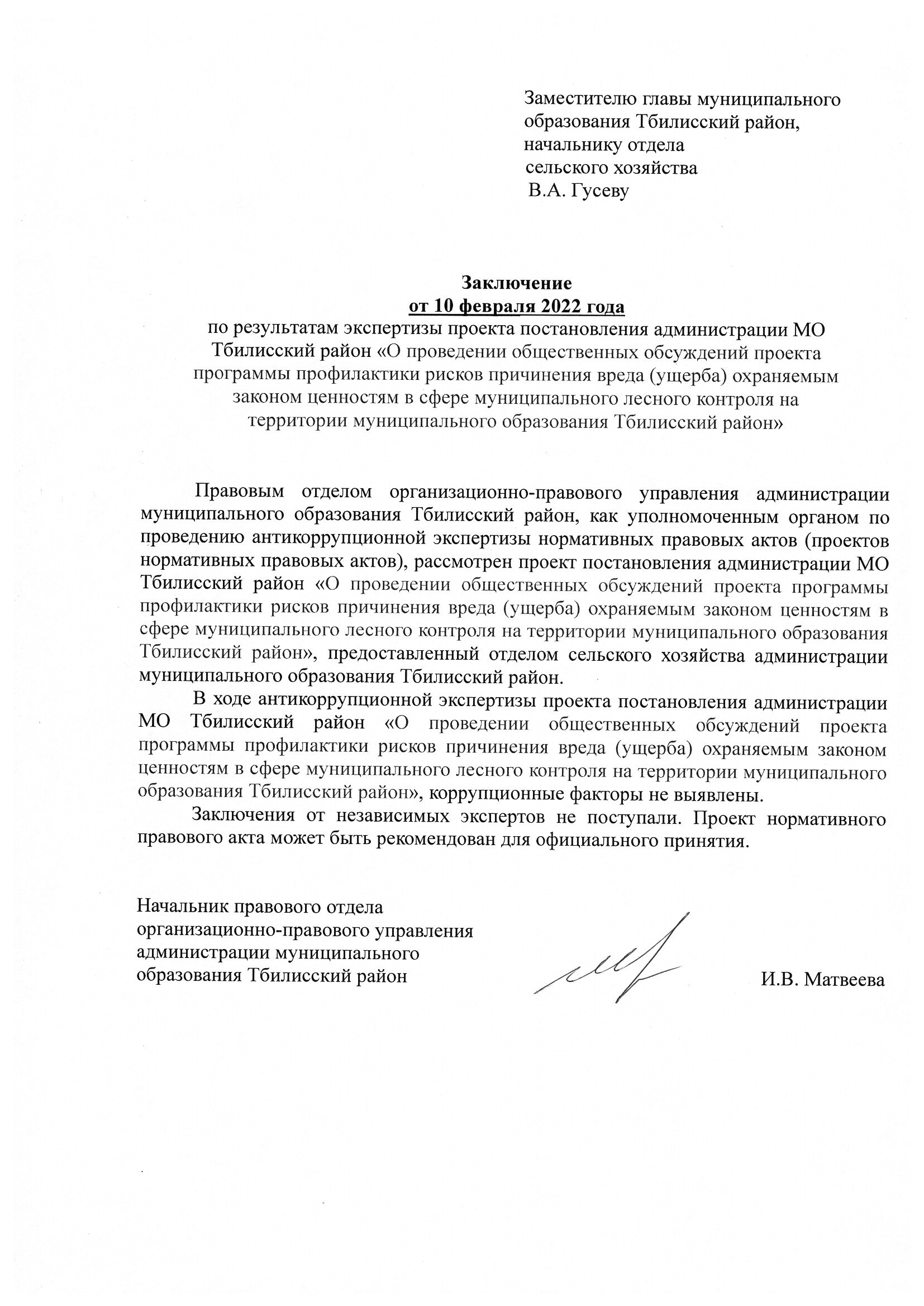 О проведении общественных обсуждений проекта программы профилактики рисков причинения вреда (ущерба) охраняемым законом ценностям в сфере муниципального лесного контроля на территории муниципального образования Тбилисский район