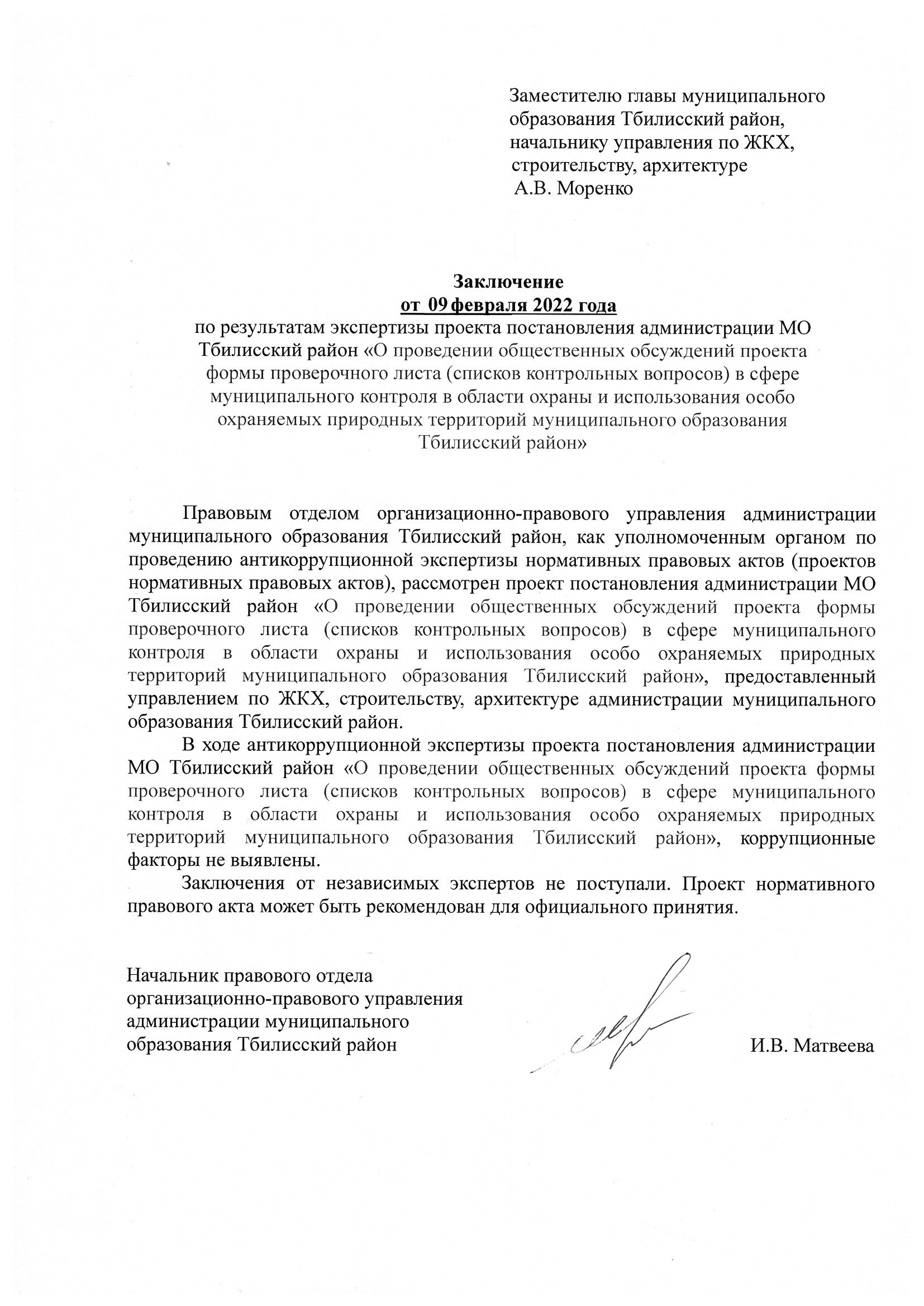 Заключение органа, уполномоченного на проведение антикоррупционной экспертизы: