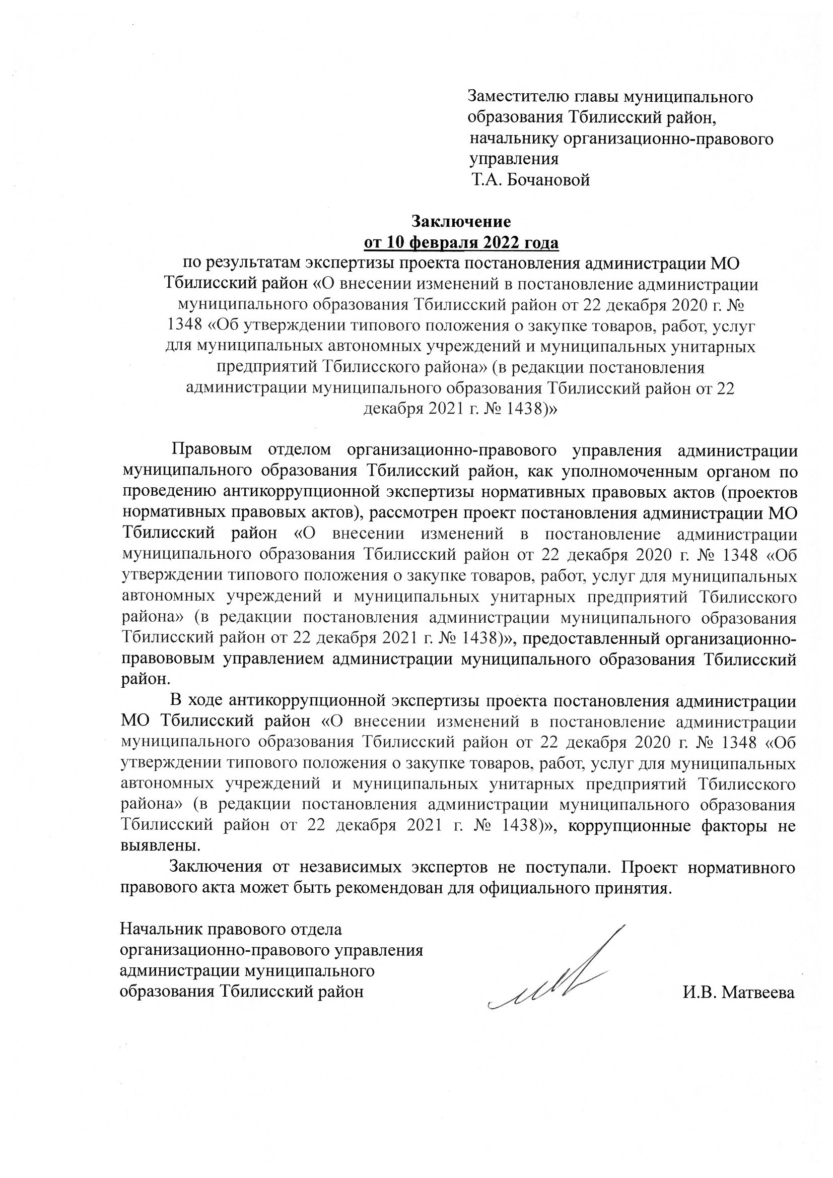 О внесении изменений в постановление администрации муниципального образования Тбилисский район от 22 декабря 2020 г. № 1348 «Об утверждении типового положения о закупке товаров, работ, услуг для муниципальных автономных учреждений и муниципальных унитарных предприятий Тбилисского района» (в редакции постановления администрации муниципального образования Тбилисский район от 22 декабря 2021 г. № 1438)