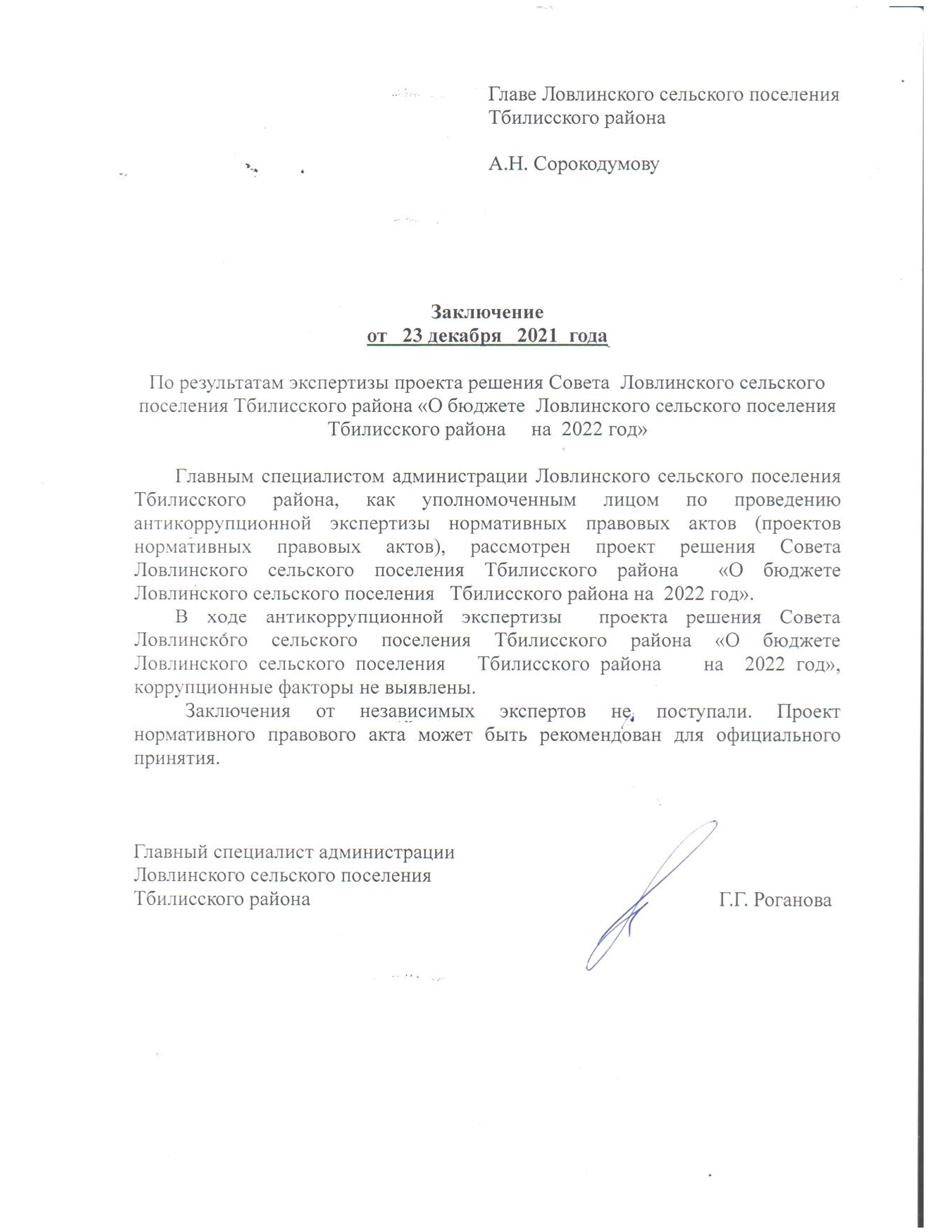 Заключение органа, уполномоченного на проведение антикоррупционной экспертизы: