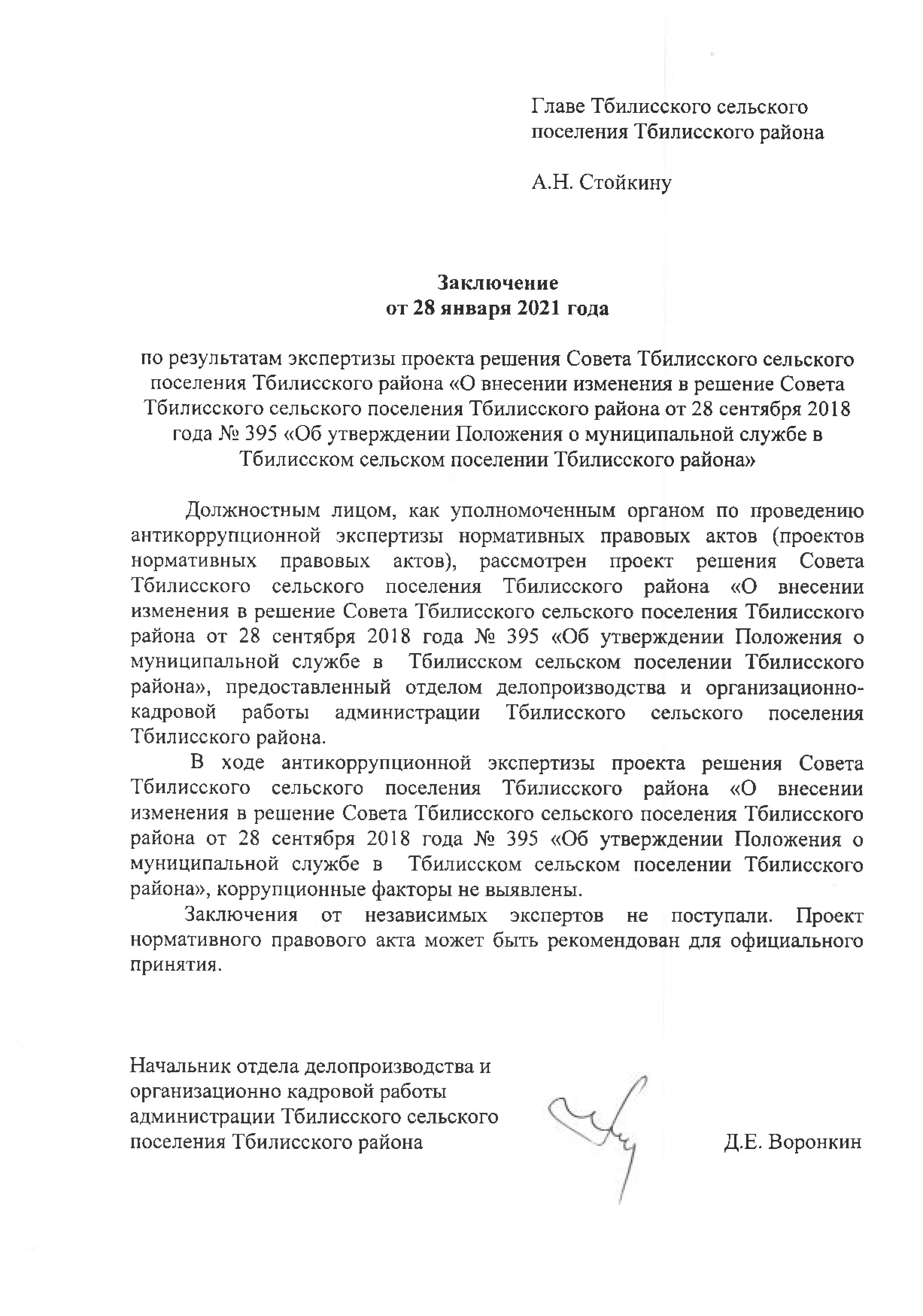 О внесении изменения в решение Совета Тбилисского сельского поселения Тбилисского района от 28 сентября 2018 года № 395 «Об утверждении Положения о муниципальной службе в Тбилисском сельском поселении Тбилисского района»