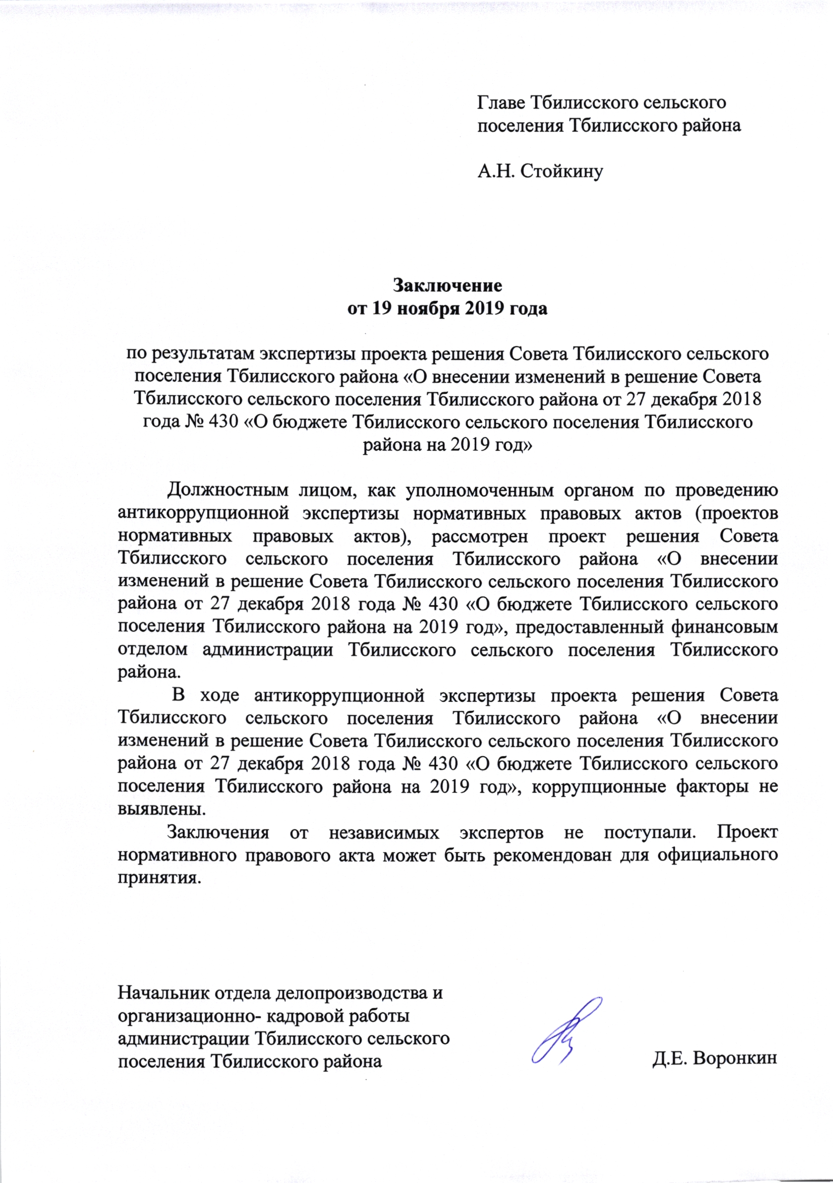 22.11.2019 Проект решения Совета Тбилисского с/п
