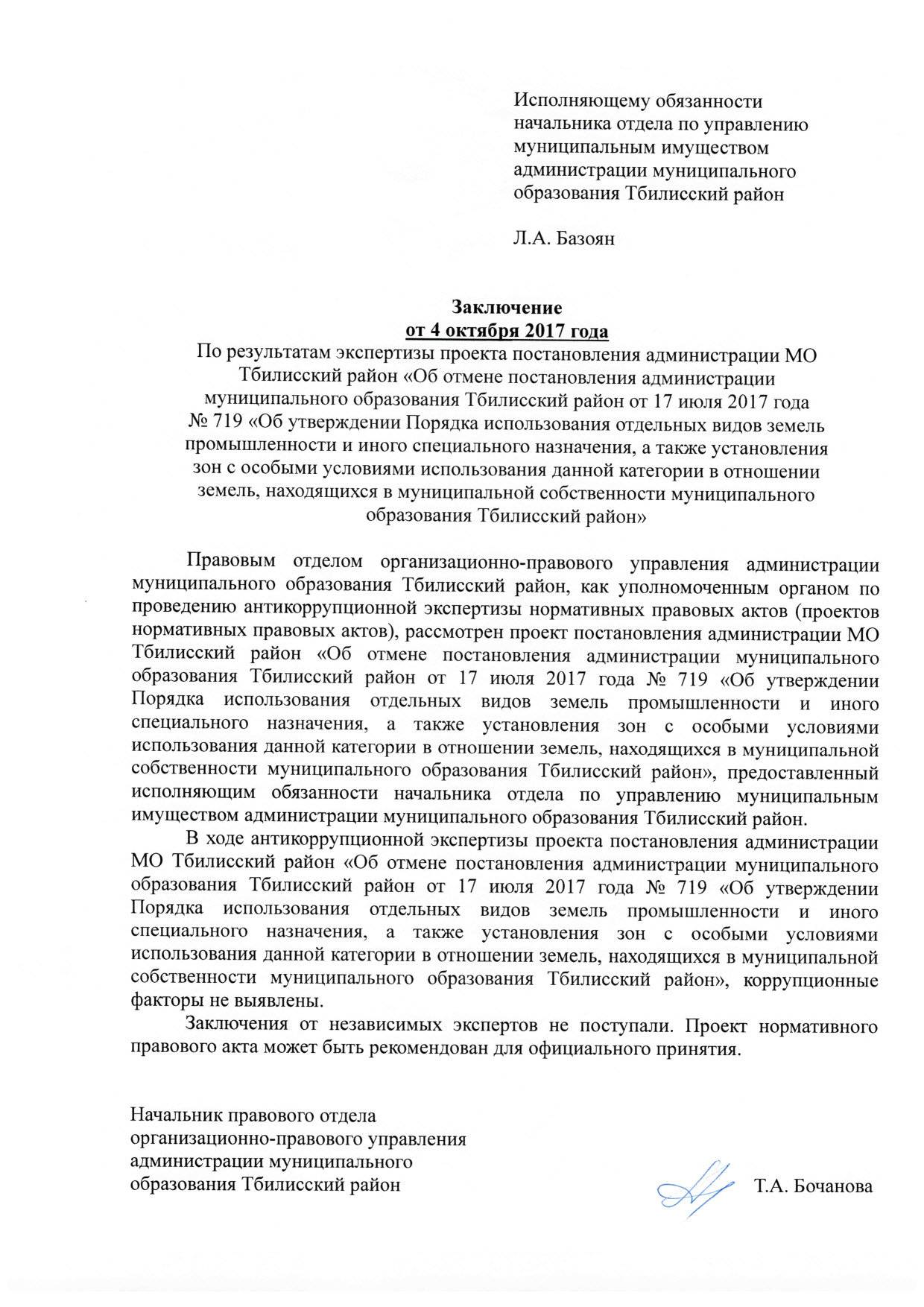Об отмене постановления администрации муниципального образования Тбилисский район от 17 июля 2017 года № 719 «Об утверждении Порядка использования отдельных видов земель промышленности и иного специального назначения, а также установления зон с особыми условиями использования данной категории в отношении земель, находящихся в муниципальной собственности муниципального образования Тбилисский район»
