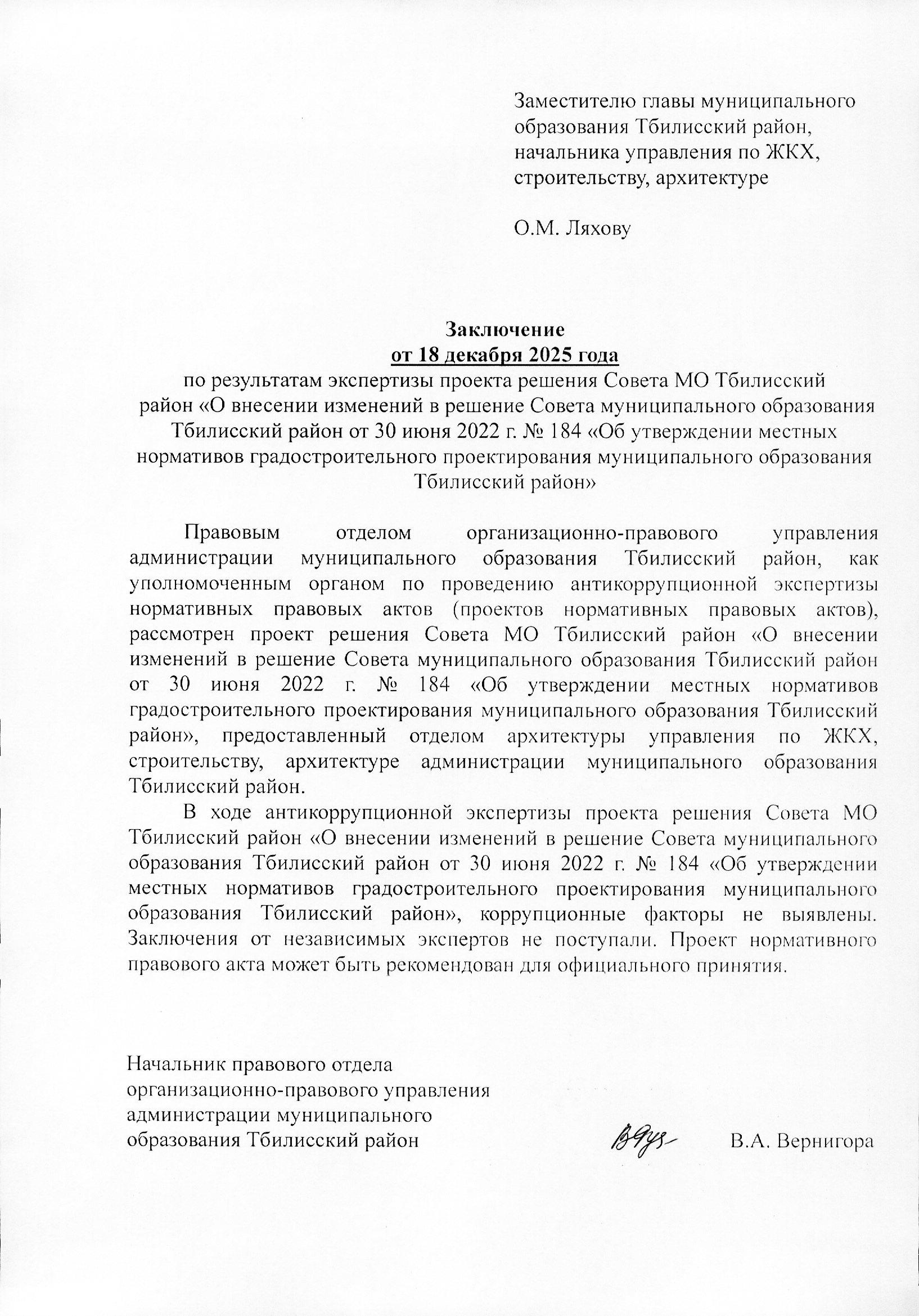 О внесении изменений в решение Совета муниципального образования Тбилисский район от 30 июня 2022 г. № 184 «Об утверждении местных нормативов градостроительного проектирования муниципального образования Тбилисский район»
