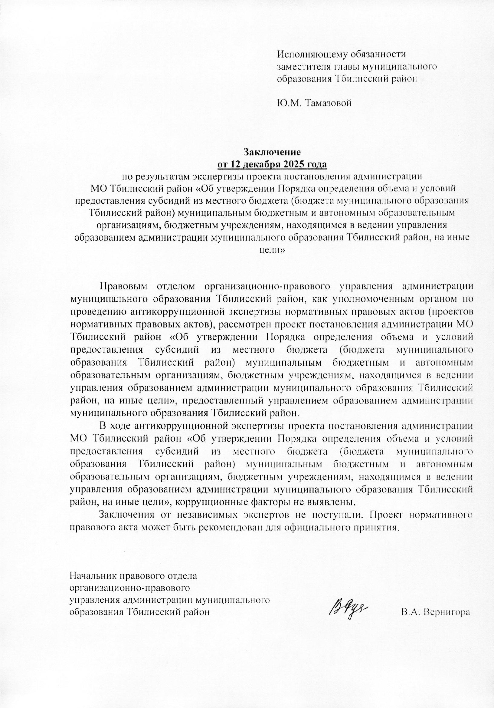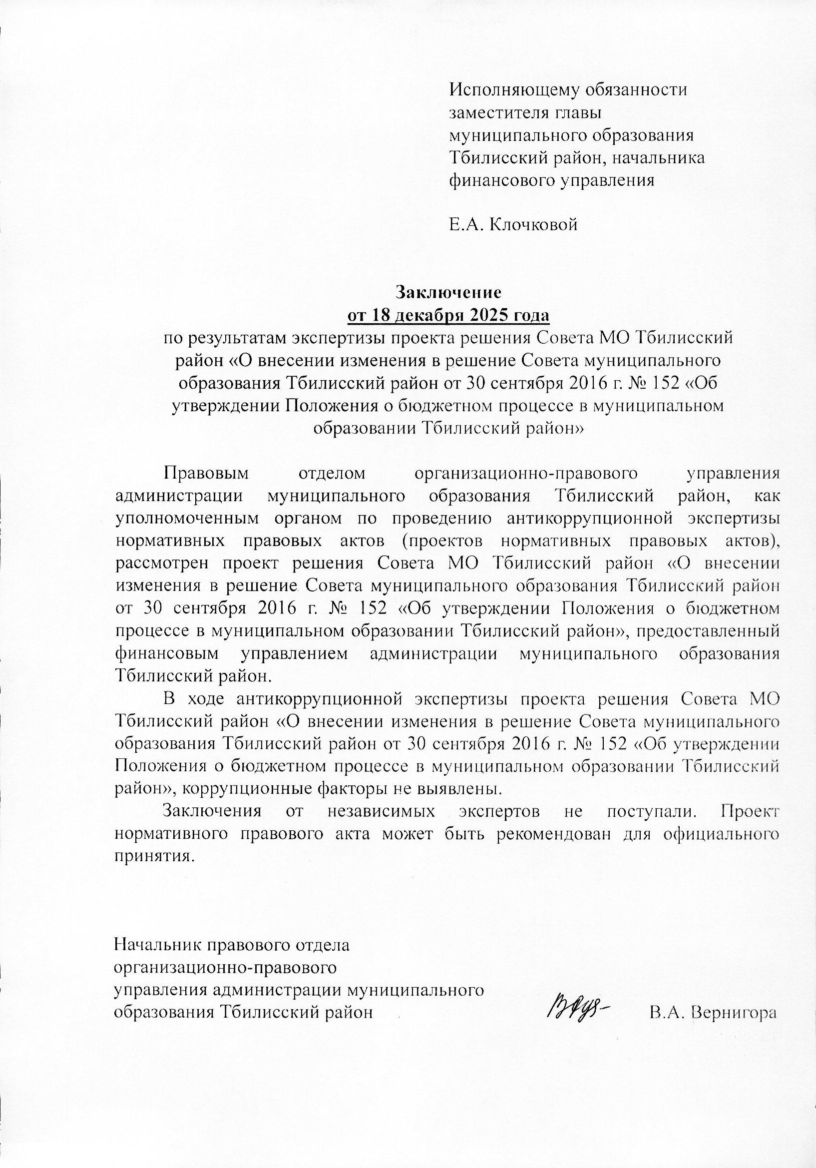 Заключение органа, уполномоченного на проведение антикоррупционной экспертизы: