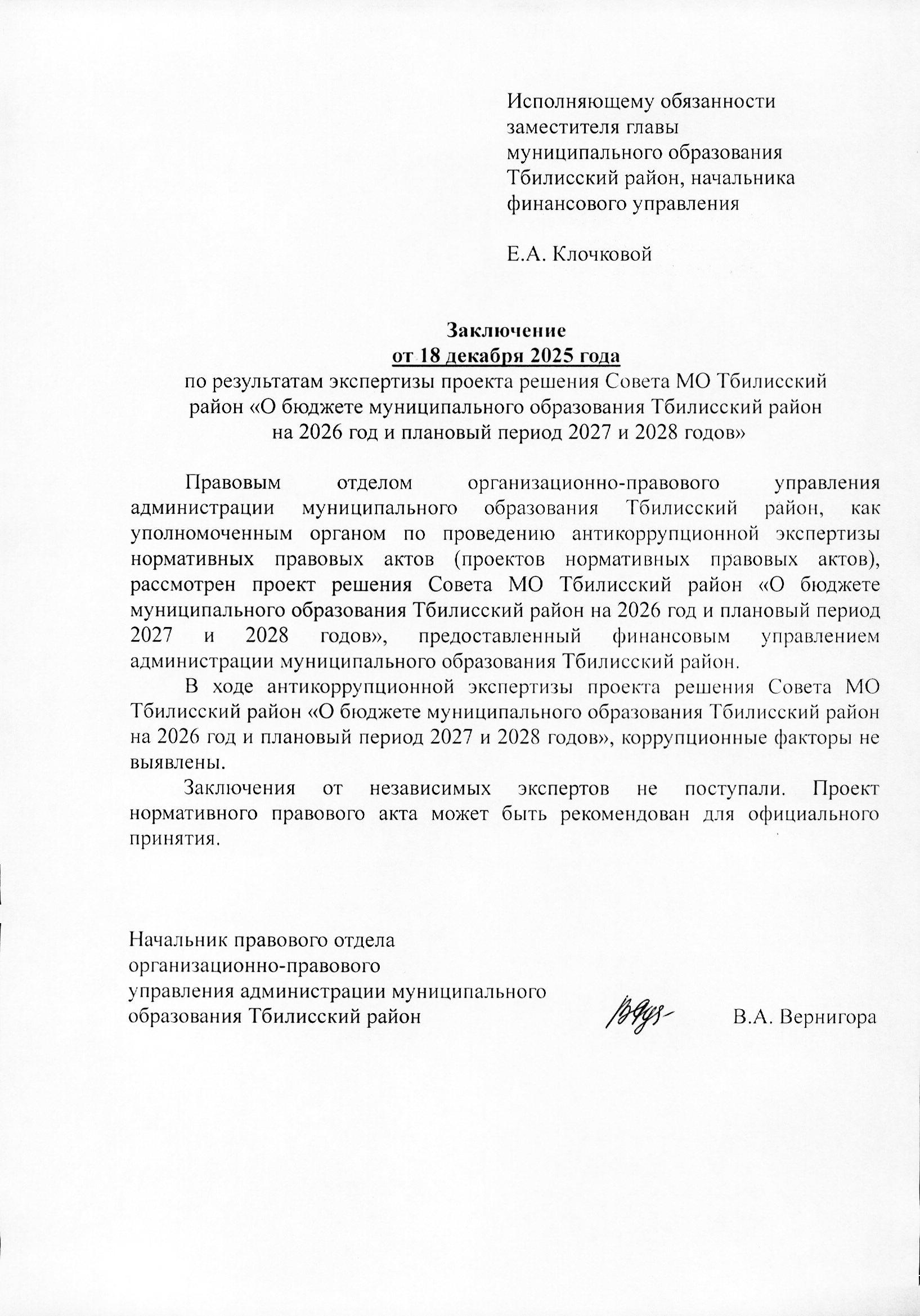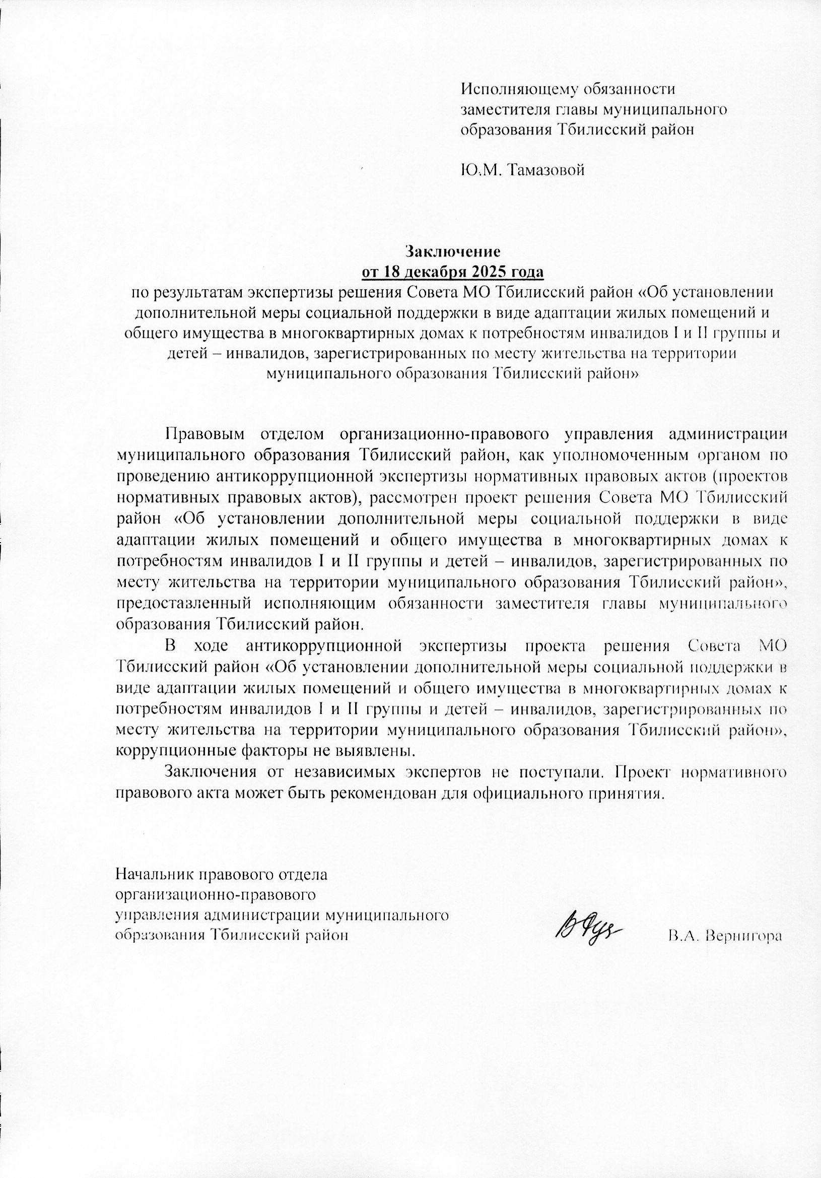Заключение на изменение в проект муниципальной программы муниципального образования Тбилисский район «Обеспечение жильем молодых семей» от 19 декабря 2025 года Скачать