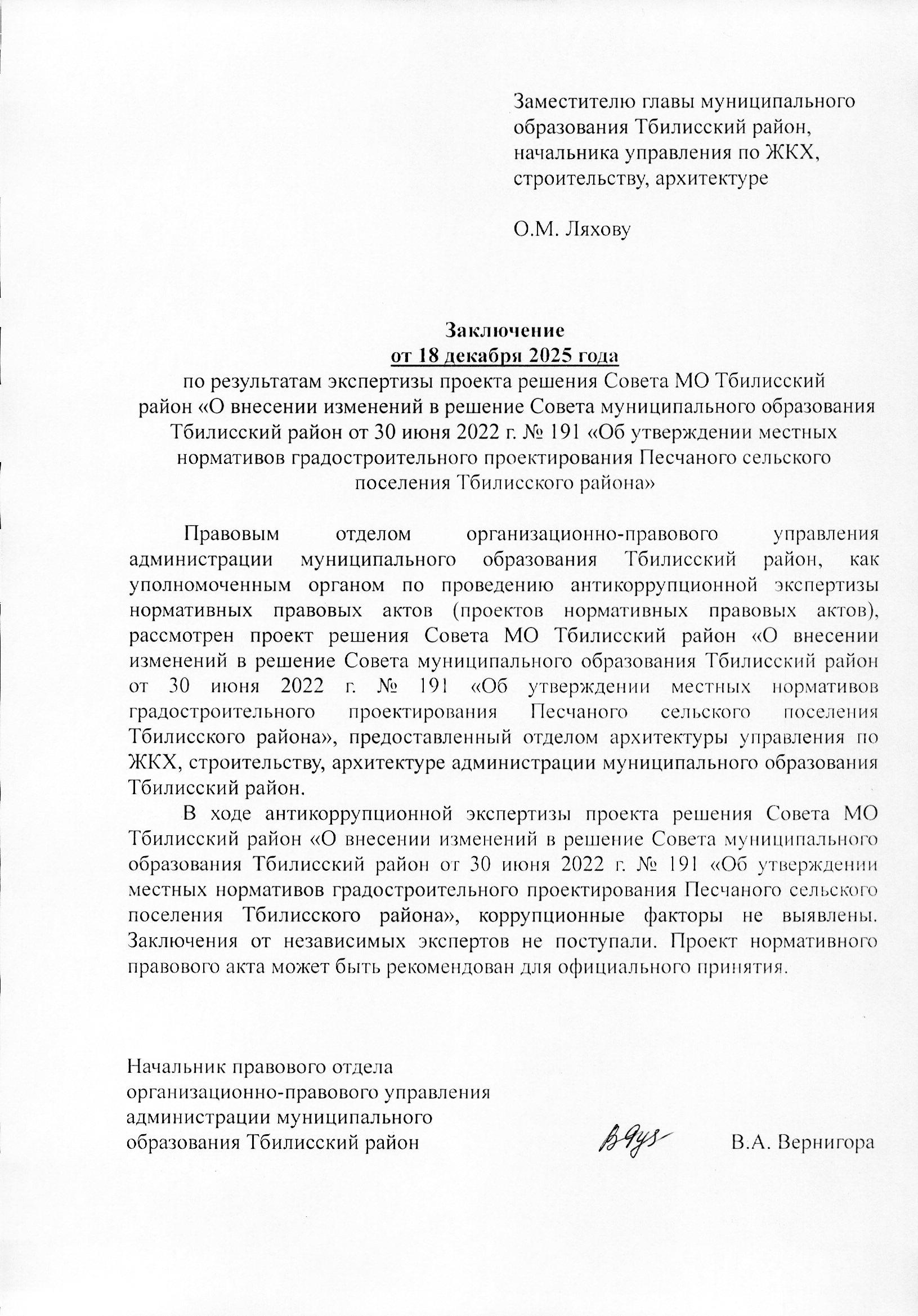 О внесении изменений в решение Совета муниципального образования Тбилисский район от 30 июня 2022 г. № 191 «Об утверждении местных нормативов градостроительного проектирования Песчаного сельского поселения Тбилисского района»