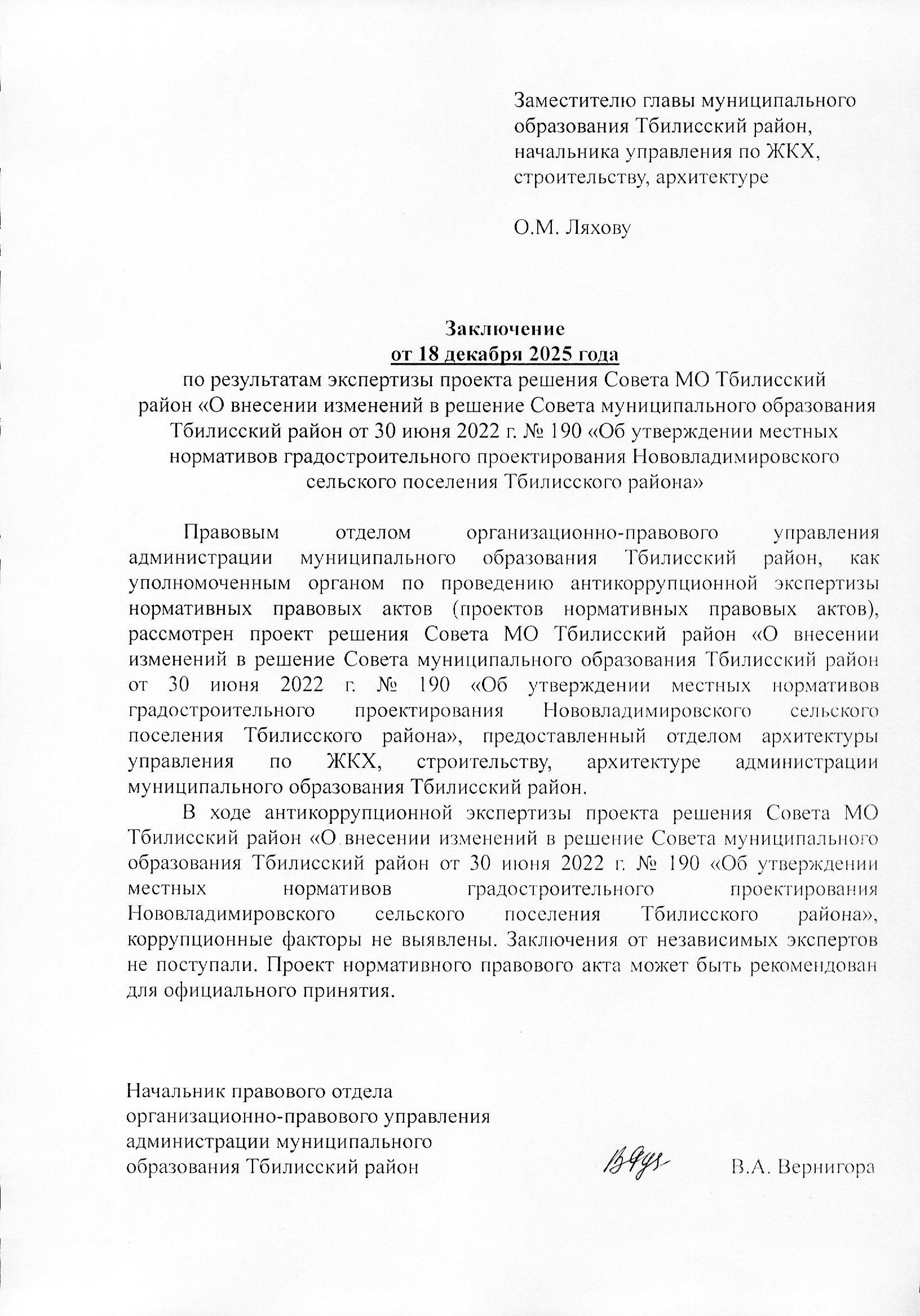 О внесении изменений в решение Совета муниципального образования Тбилисский район от 30 июня 2022 г. № 190 «Об утверждении местных нормативов градостроительного проектирования Нововладимировского сельского поселения Тбилисского района»