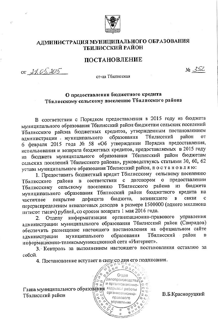 Постановление администрации МО Тбилисский район от 21.05.2015 г. № 352